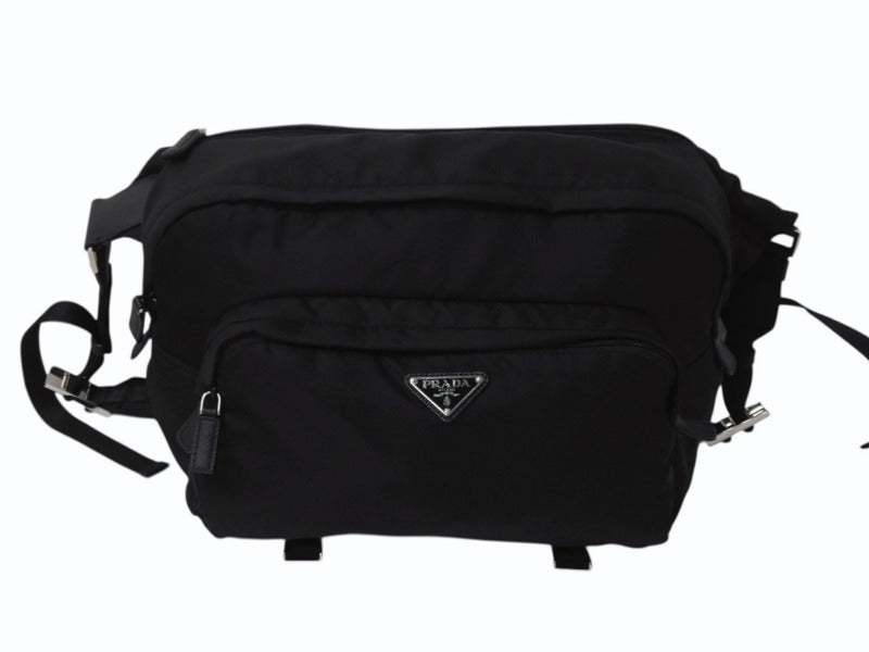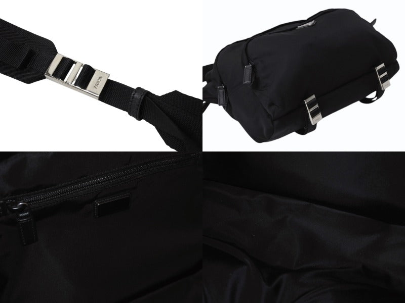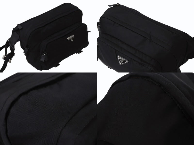 PRADA プラダ テスート モンターニャ ウエストバッグ 2VH021 ナイロン ブラック シルバー金具 美品 中古 4b002573