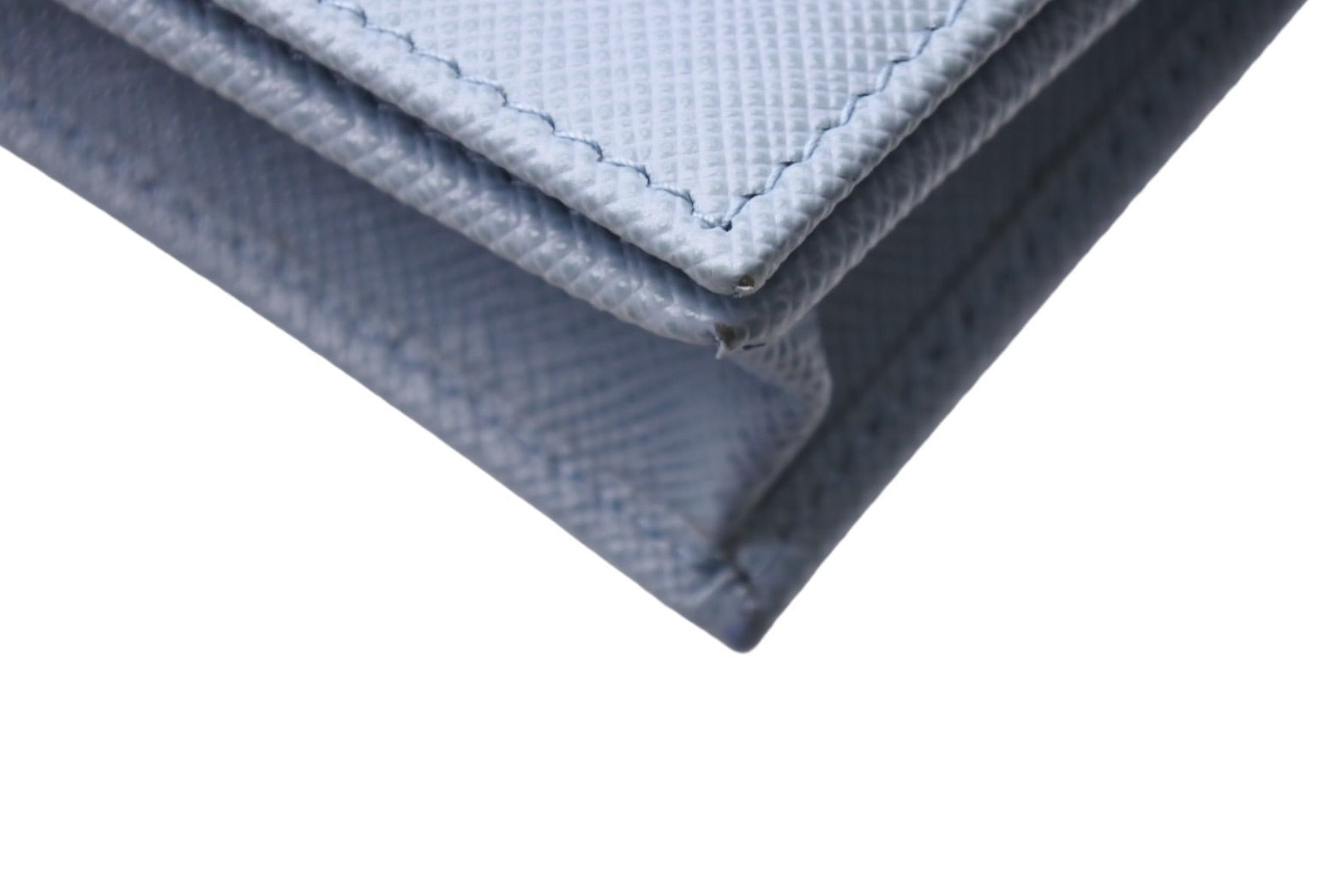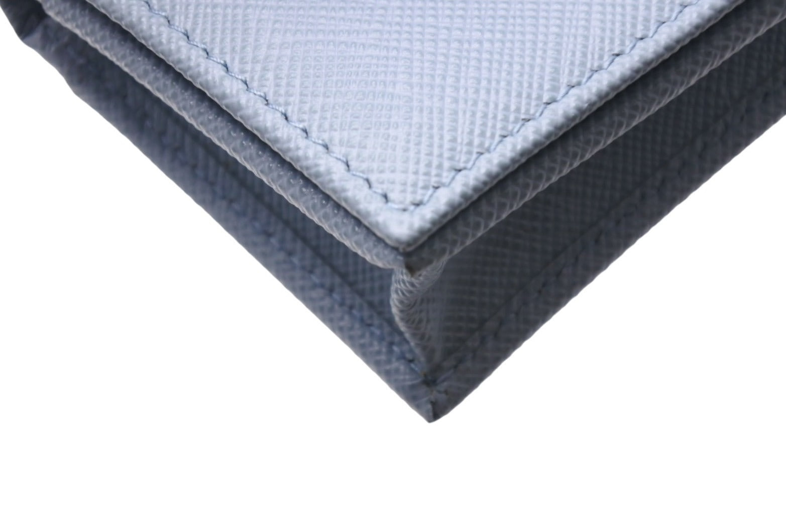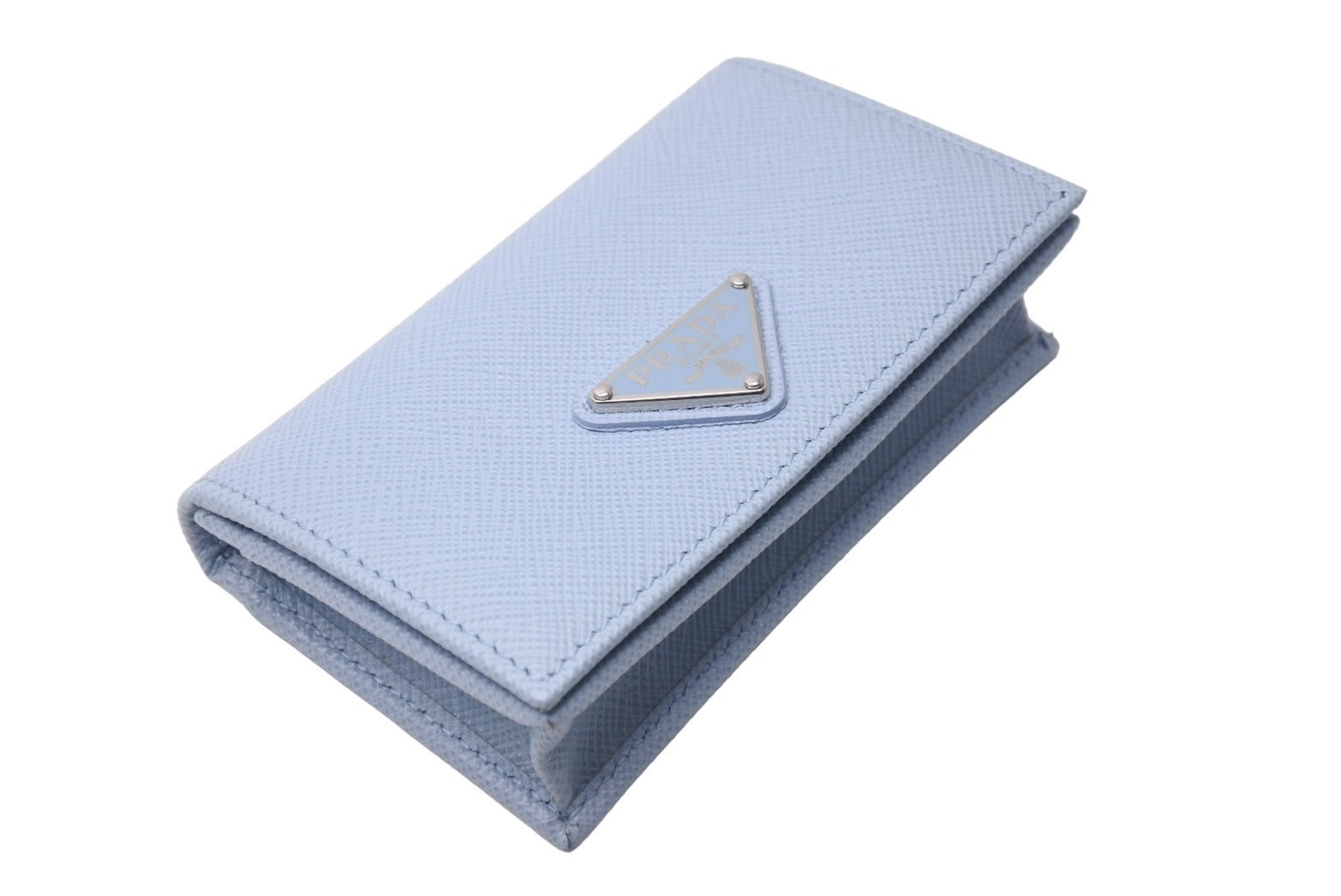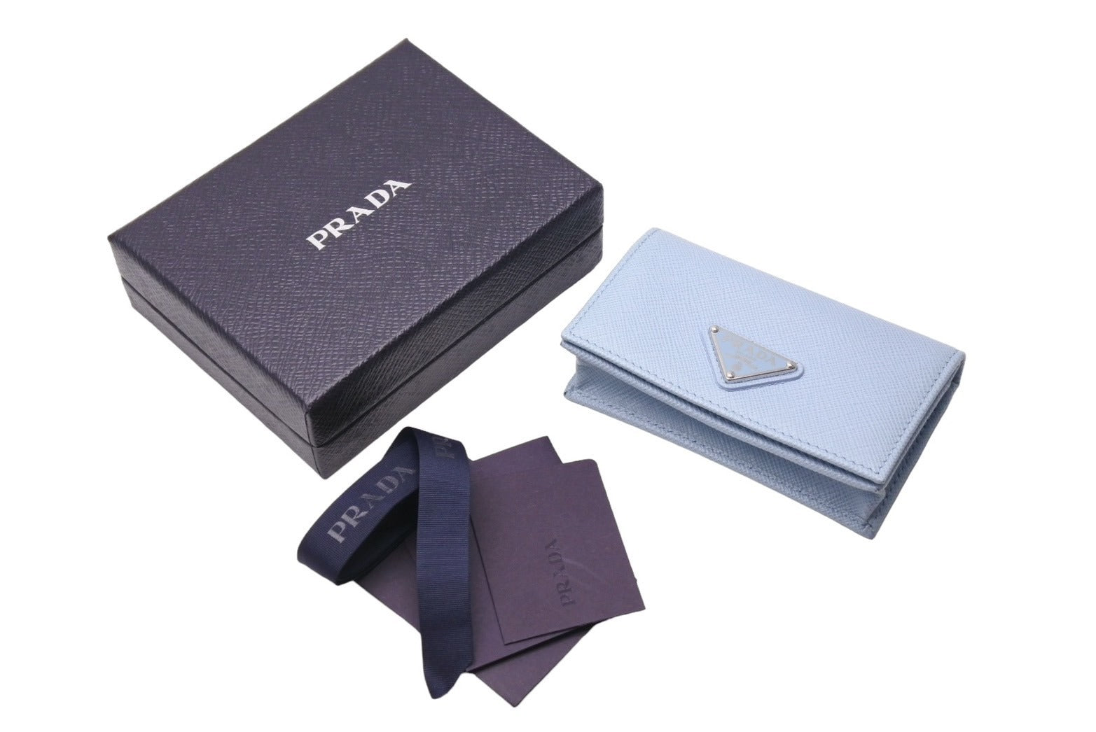 プラダを象徴するトライアングルロゴをあしらい、高級感と収納力が両立されたカードです。