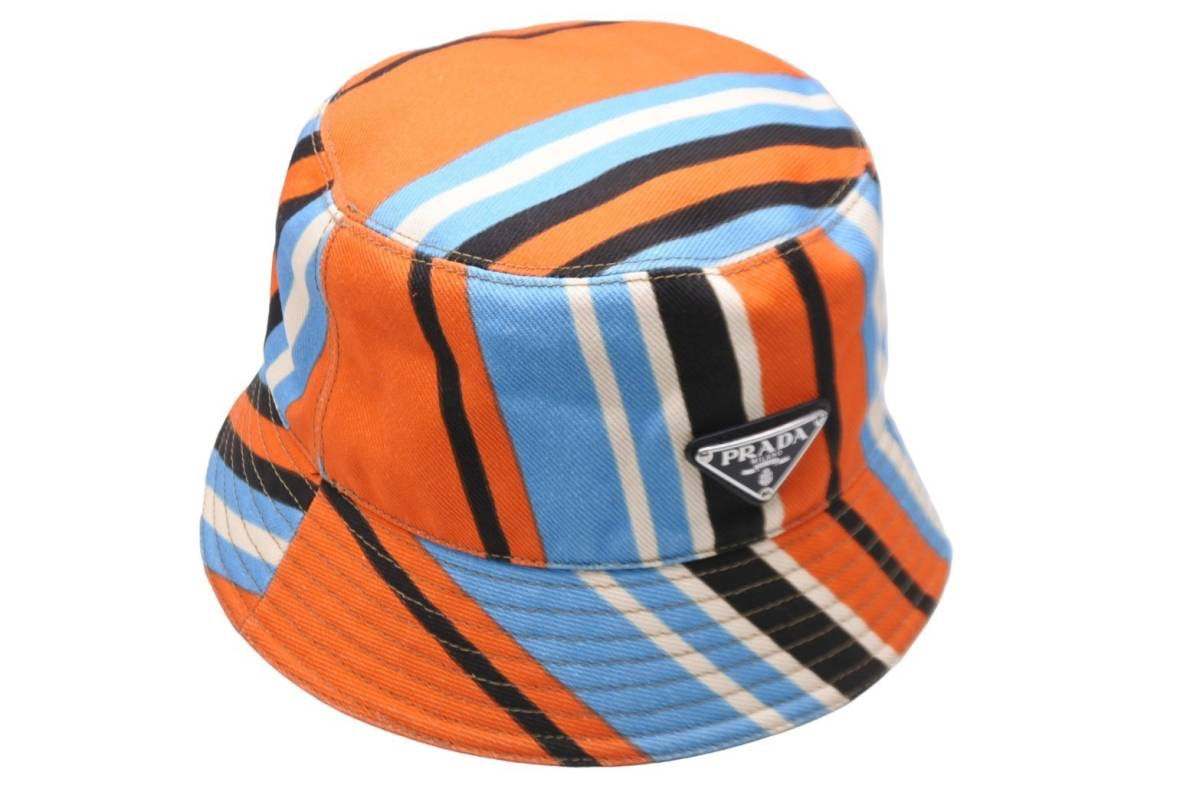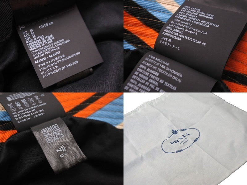 PRADA プラダ 2HC137 即完売品 バケットハット ストライプ トライアングルロゴ コットン サイズM 美品 中古 55150