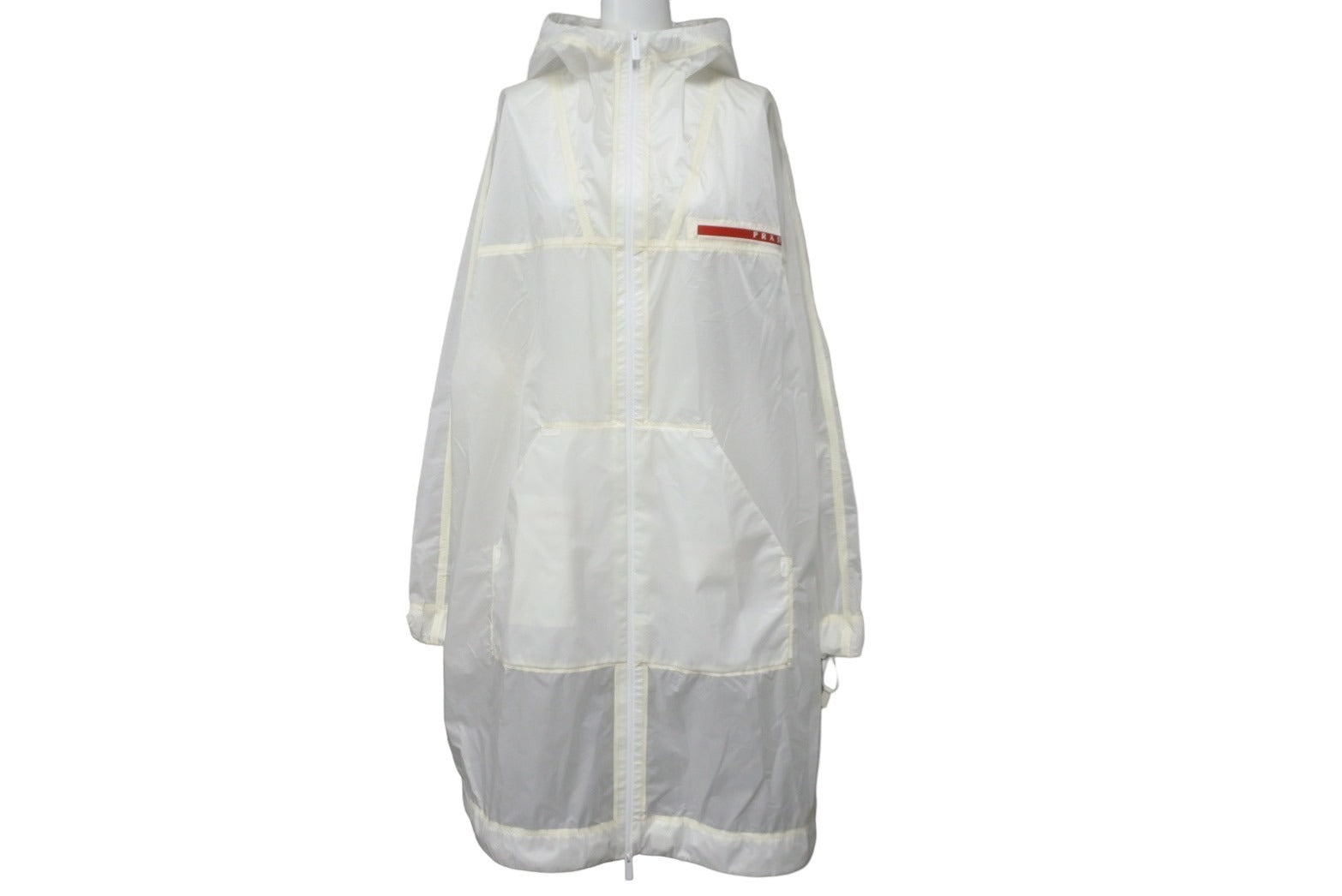 PRADA プラダ リネアロッサ フード付リップストップ レインコート LR-LX039 ホワイトレッド サイズXS 美品 中古 55308