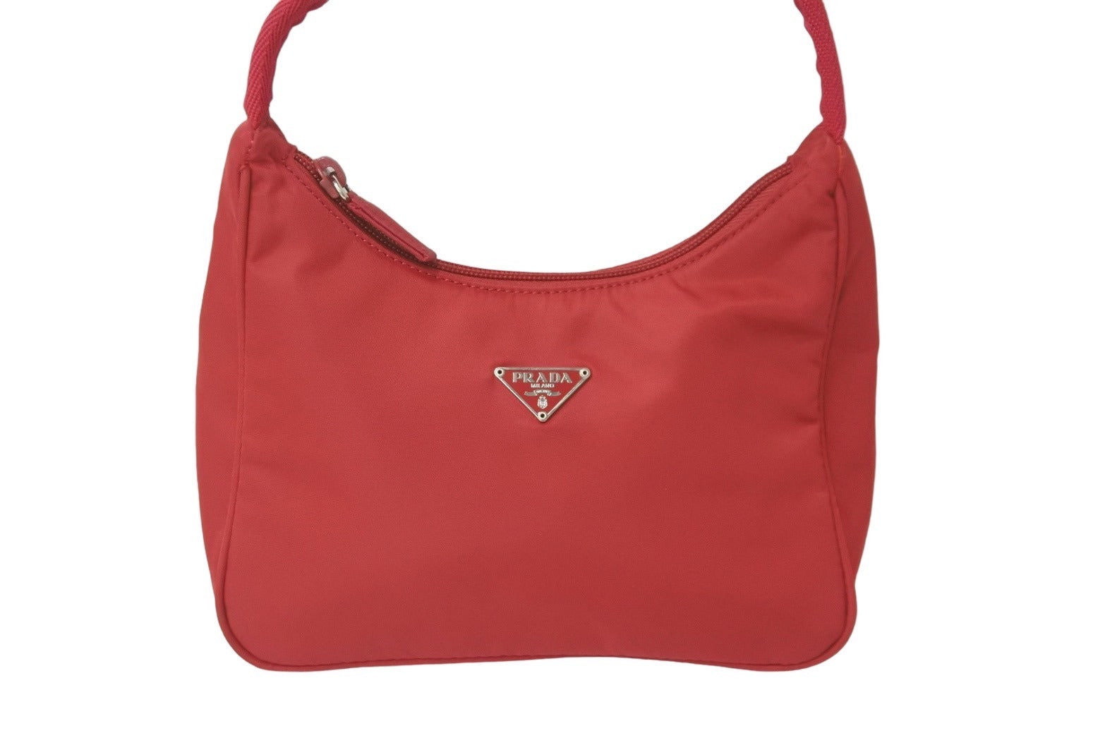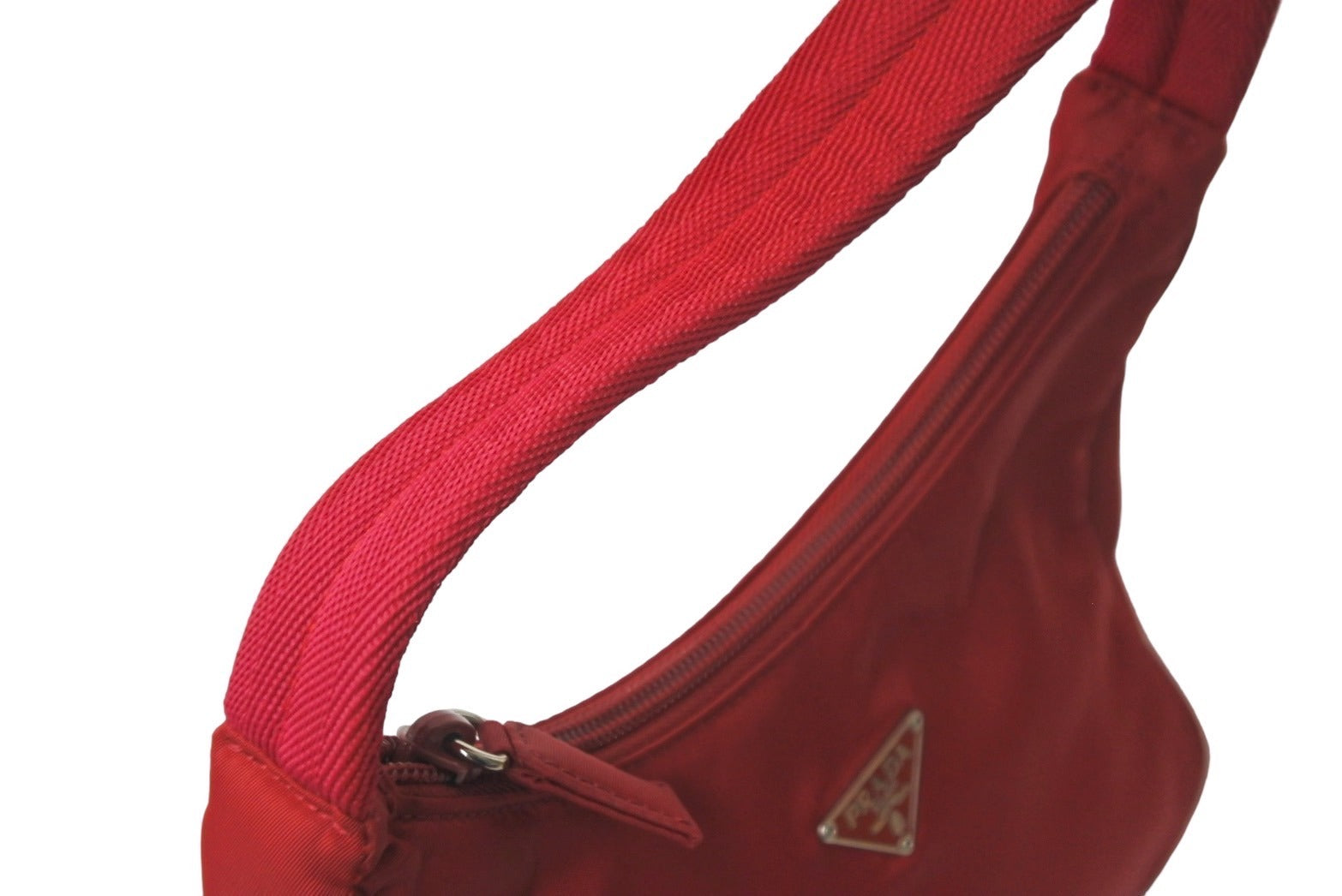 PRADA プラダ ハンドバッグ ワンショルダー MV515 ホーボー ミニバッグ 三角ロゴ レッド ナイロン 美品 中古 57822