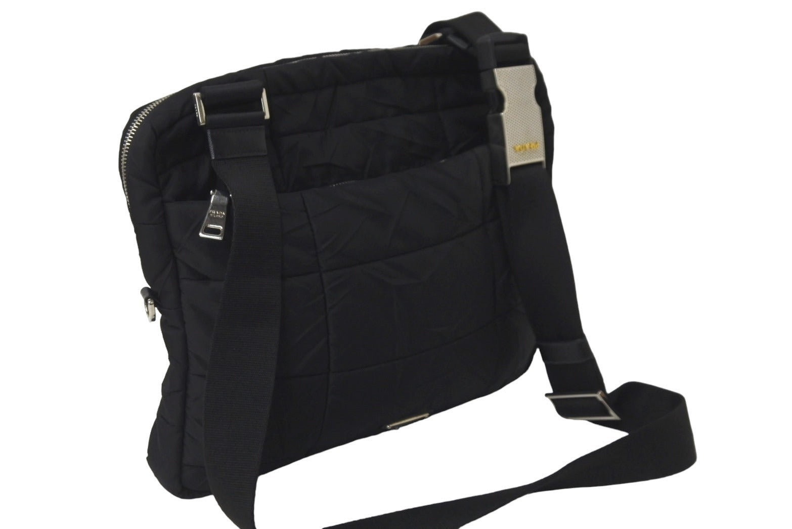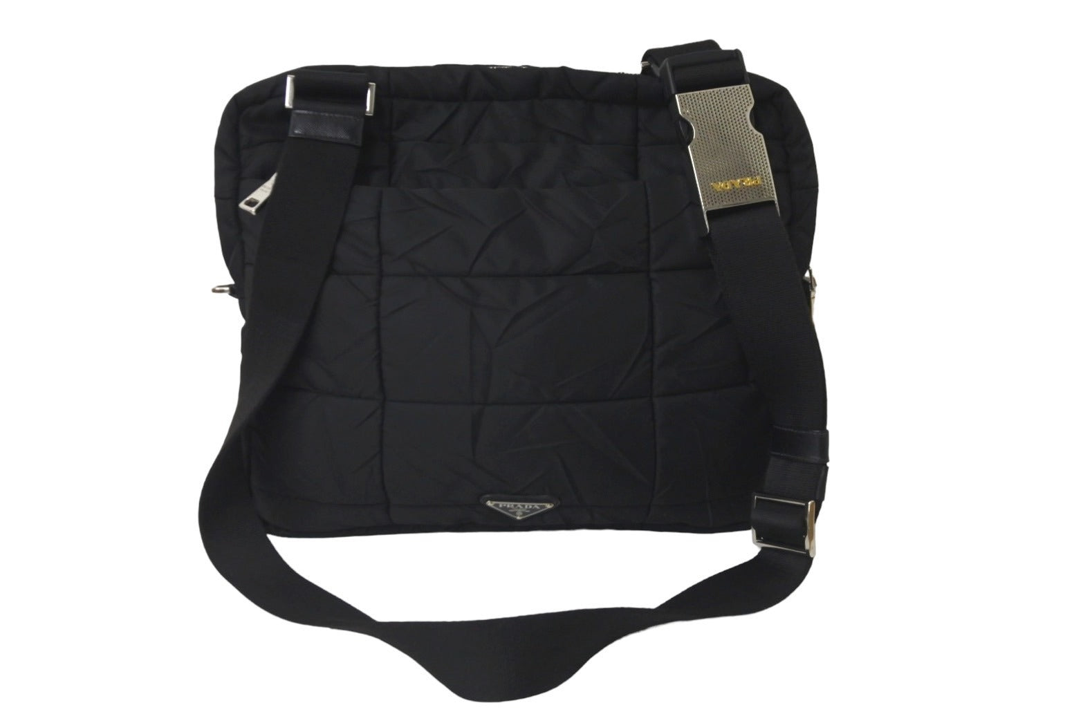 PRADA プラダショルダーバッグ VA0720 キルティング シワ加工 ナイロン ブラック シルバー金具 美品 中古 58570