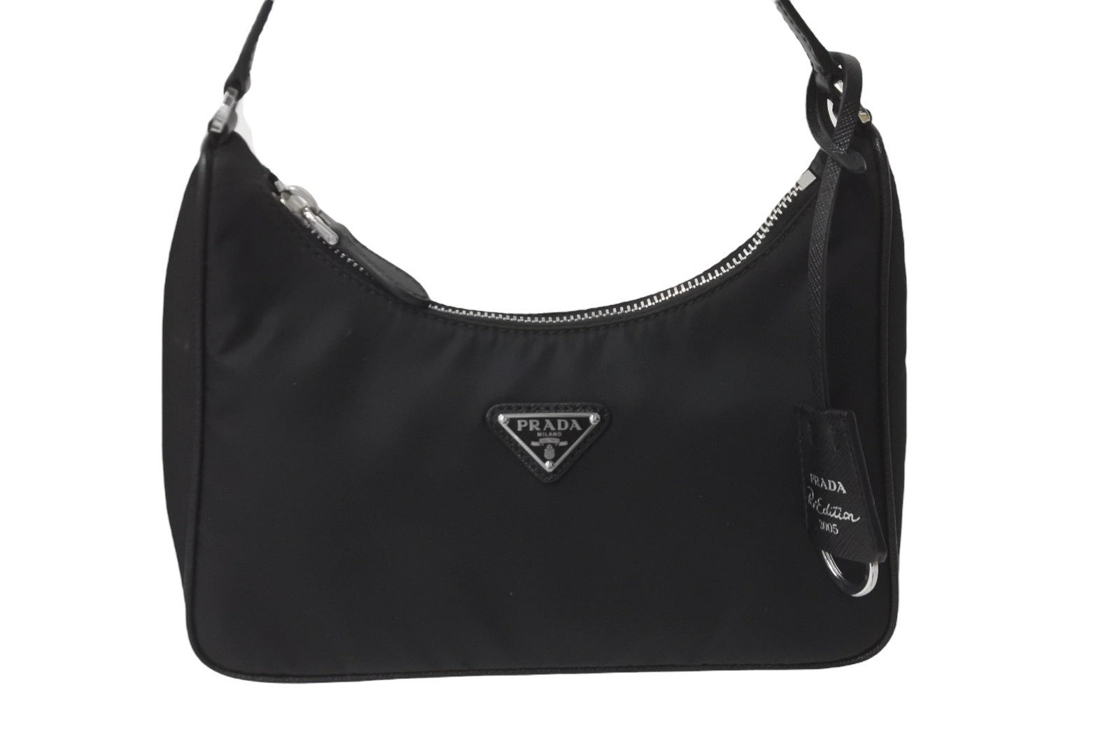 PRADA プラダ ホーボー ワンショルダー RE-EDITION 2005 トライアングル ブラック ナイロン 1NE204 美品 ロゴ 中古 59202