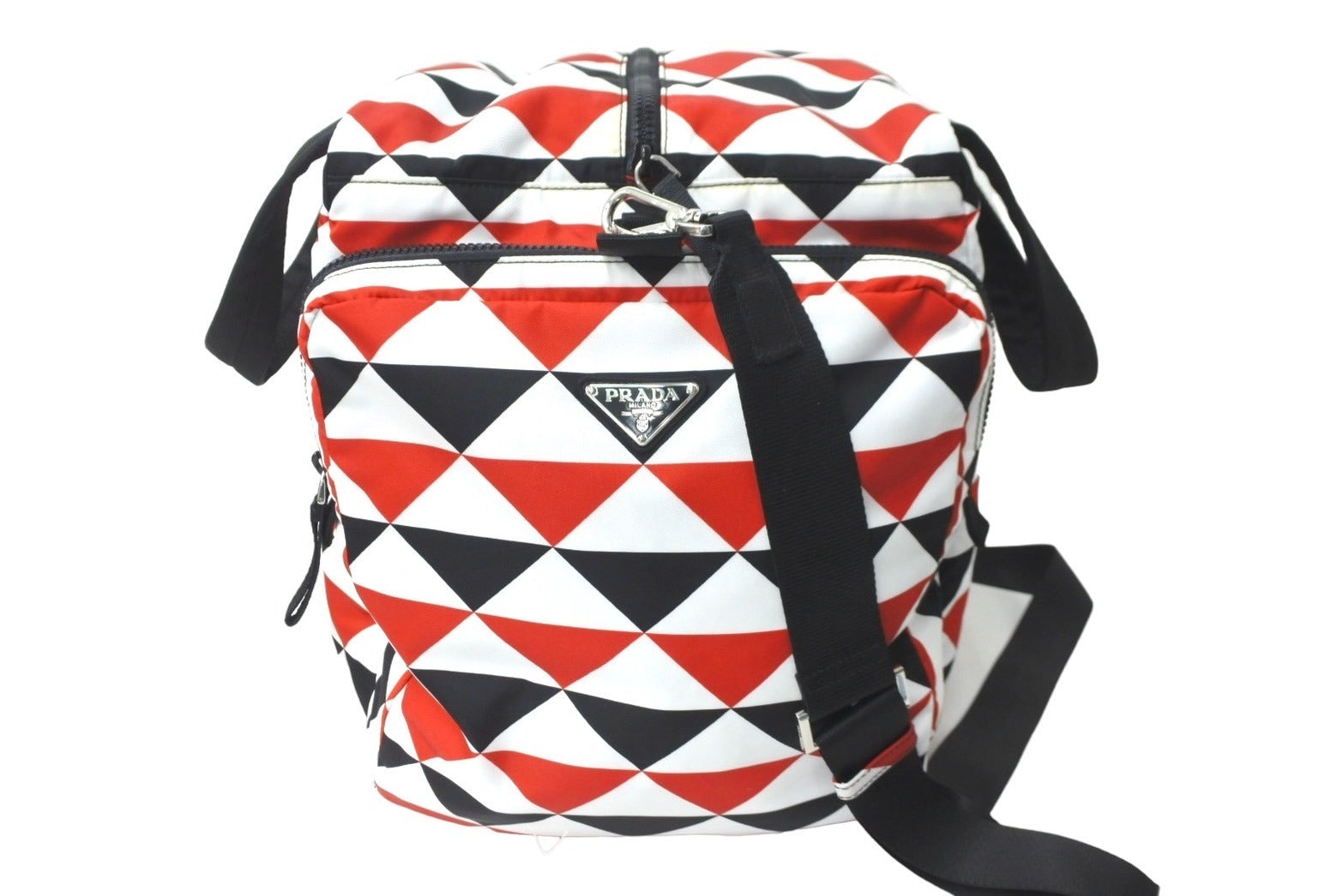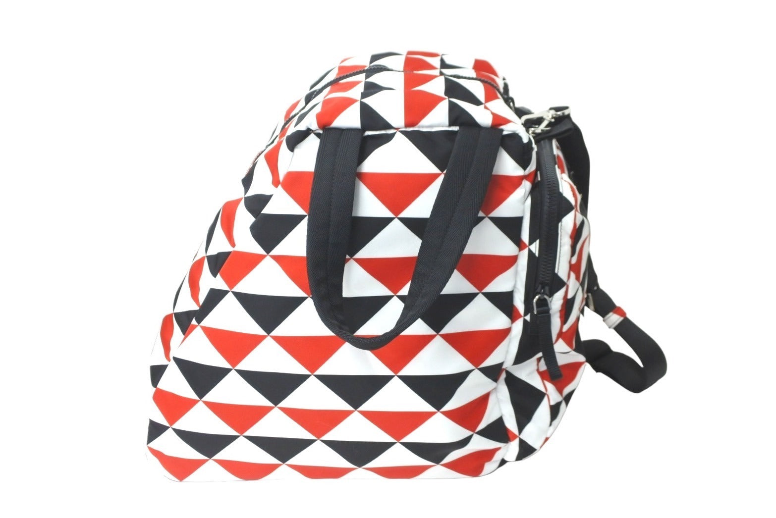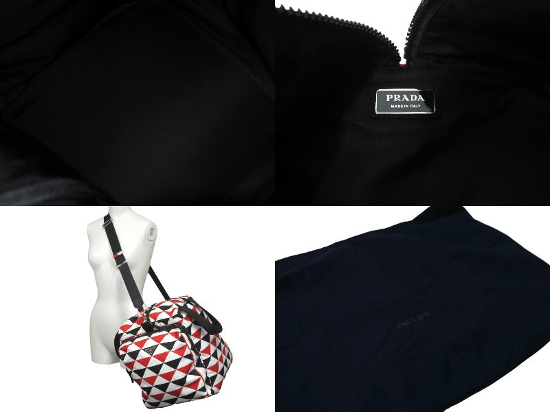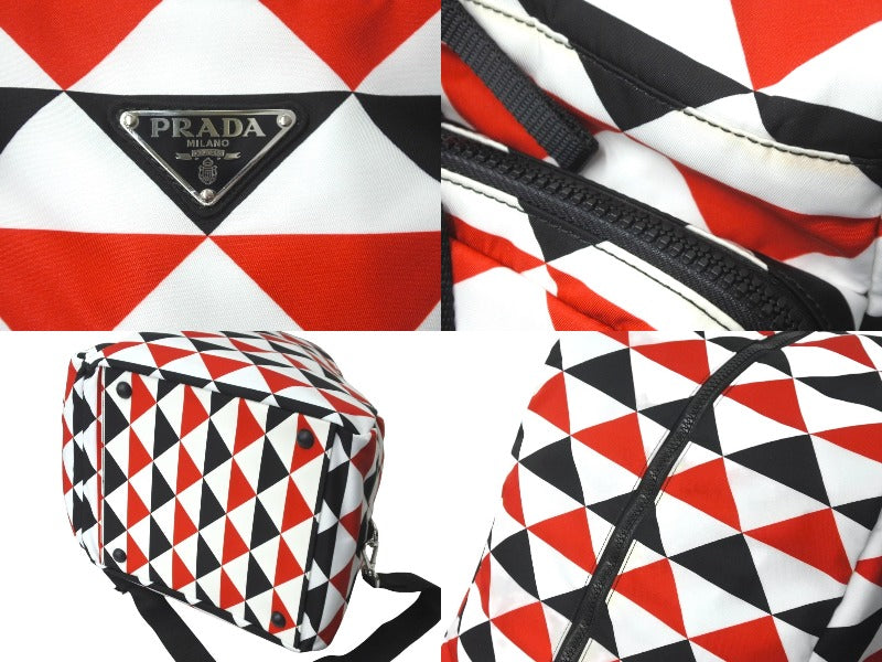 PRADA プラダショルダーバッグ トライアングル総柄 トライアングルロゴ ブラック レッド ホワイト シルバー金具 美品 中古 59559