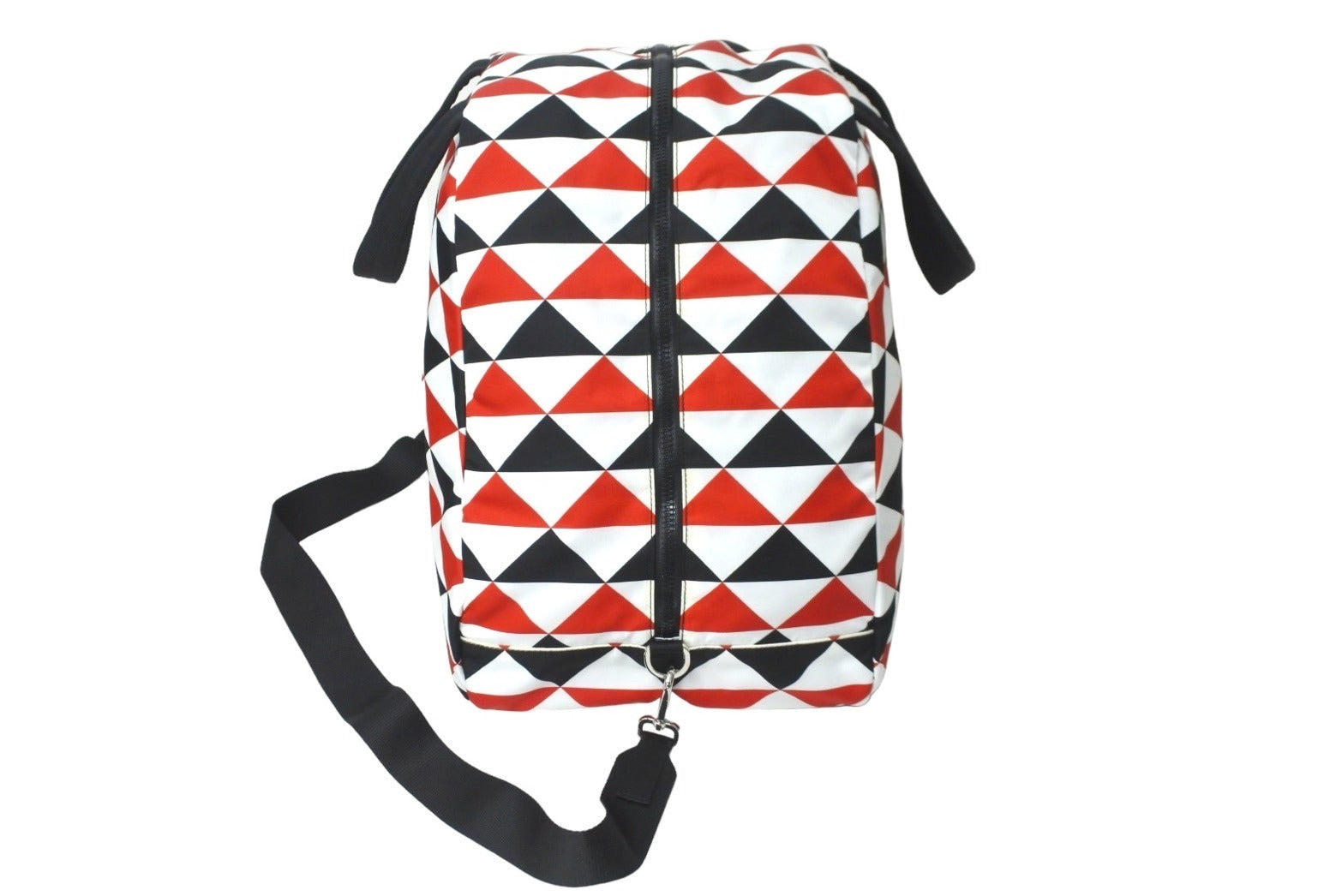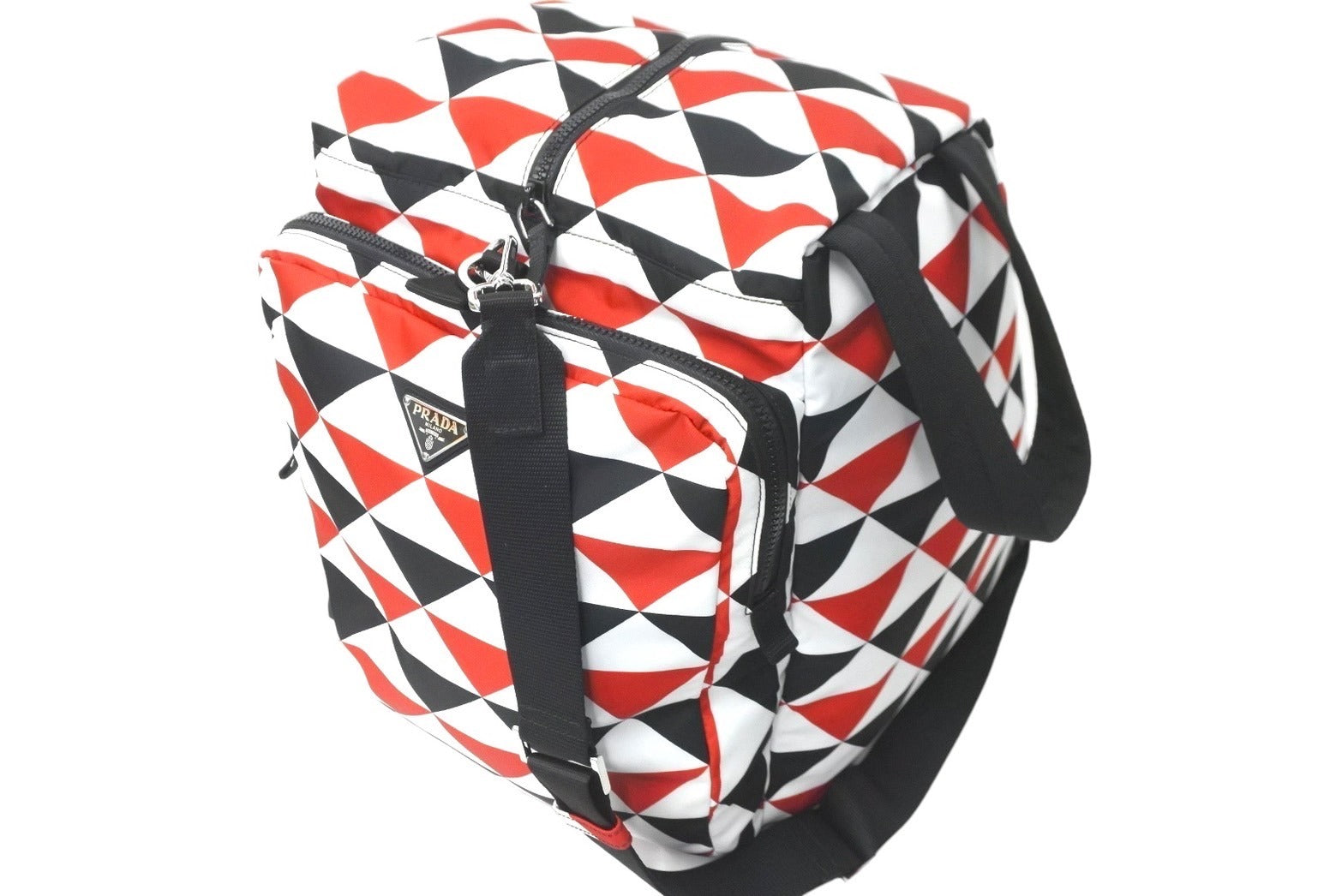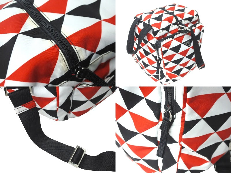 PRADA プラダショルダーバッグ トライアングル総柄 トライアングルロゴ ブラック レッド ホワイト シルバー金具 美品 中古 59559