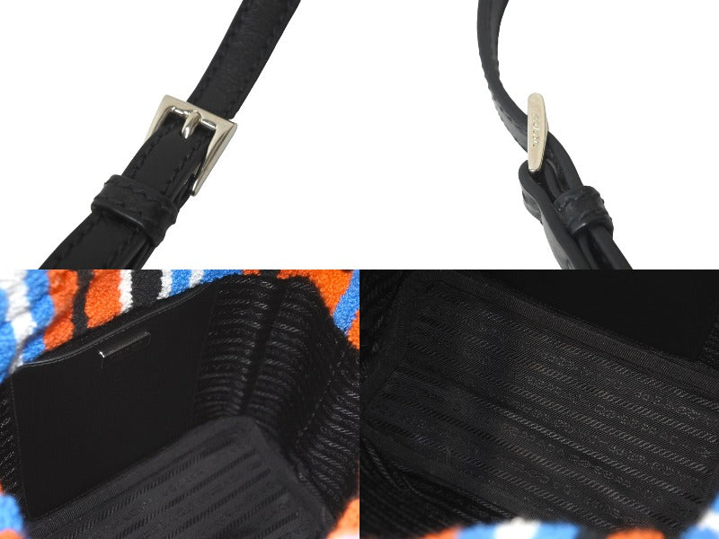 極美品 PRADA プラダ RICAMO BAIADERA 2WAY ハンドバッグ 1BA343 ショルダーバッグ ロゴ エンブロイダリー マルチカラー 中古 59858