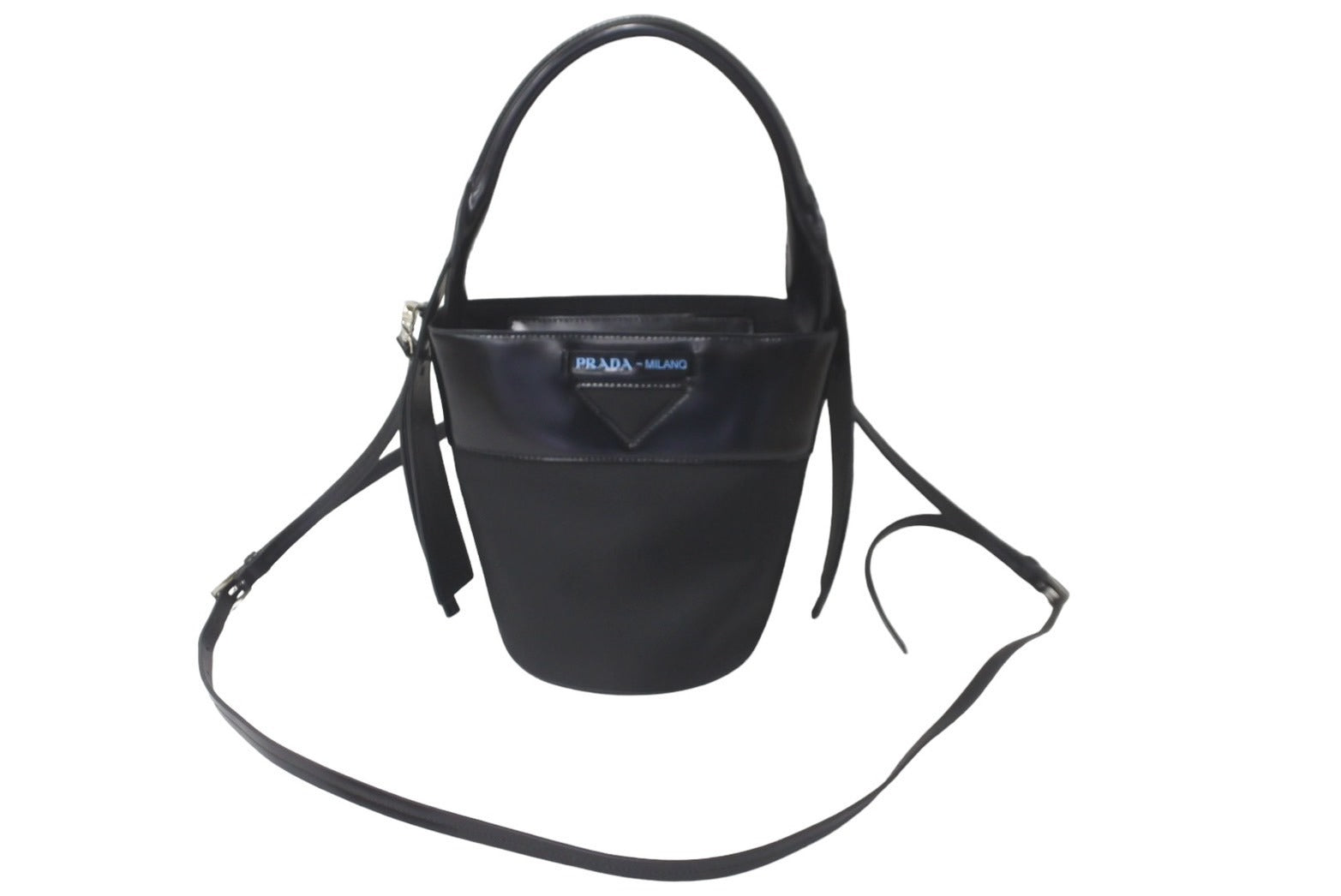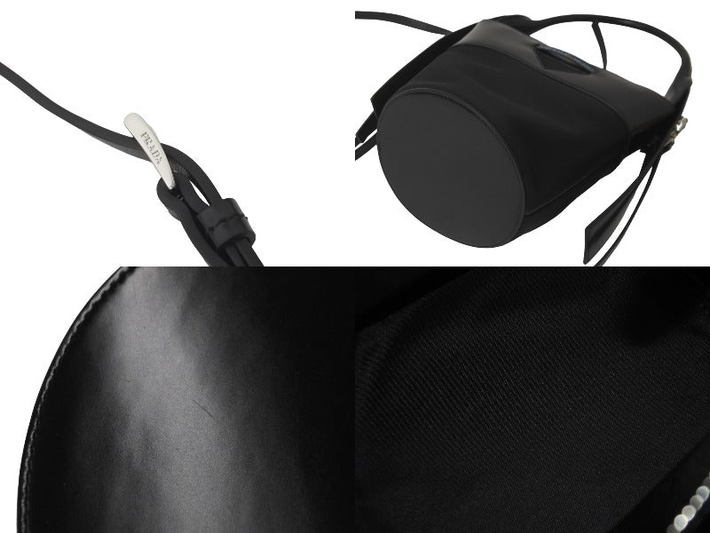 極美品 PRADA プラダ ショルダーバッグ ウーヴェルチュール バケットバッグ ブラック 1BE015 シルバー金具 中古 60115