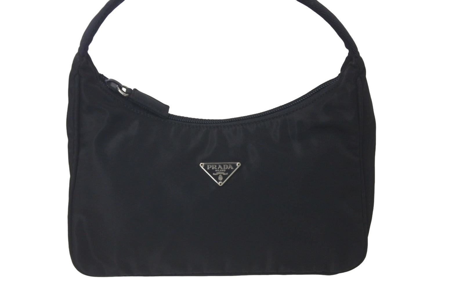 PRADA プラダ ハンドバッグ ホーボー MV515 トライアングルロゴ ブラック ナイロン シルバー金具 良品 中古 60679