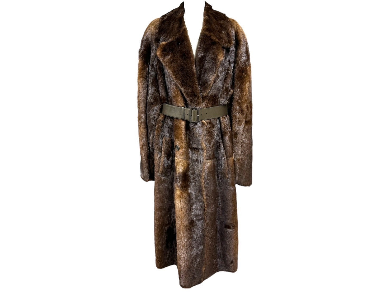 PRADA プラダ RIVER OUTER ファーコート ロングコート ブラウン サイズ48 レザー ファー 美品 中古 61152