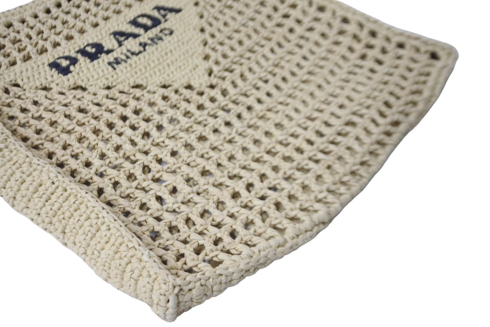 軽快な夏らしいムードが漂い、柔らかなデコンストラクテッドデザインのクロシェ編みのトートバッグ。 プラダを象徴するトライアングルを新解釈してフロントに配し、中央に刺繍のレタリングロゴをあしらったデザイン。