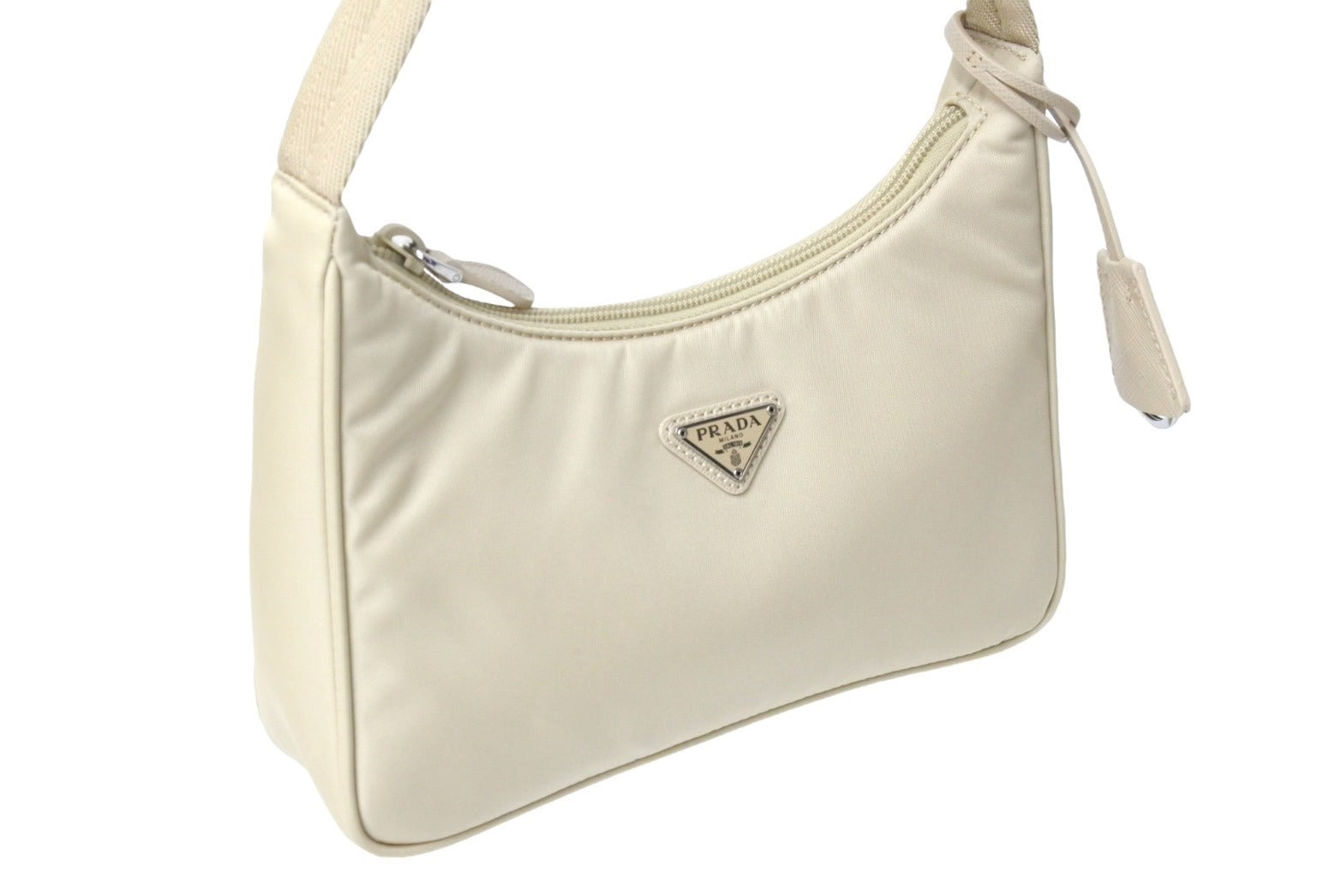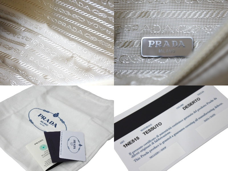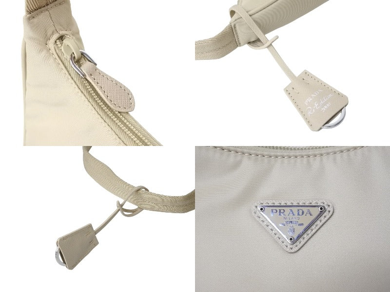 未使用 PRADA プラダ ハンドバッグ ワンショルダー ホーボー 2000年版 ナイロン 1NE515 ナイロン ベージュ 中古 65371