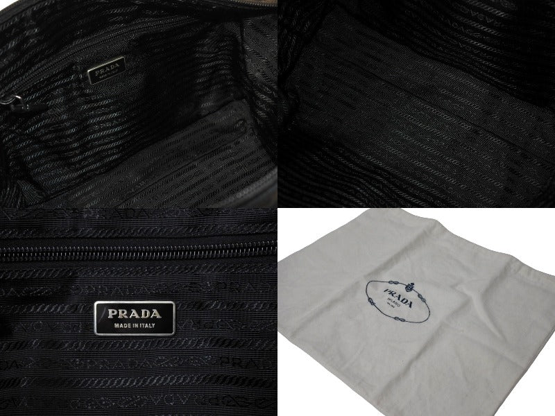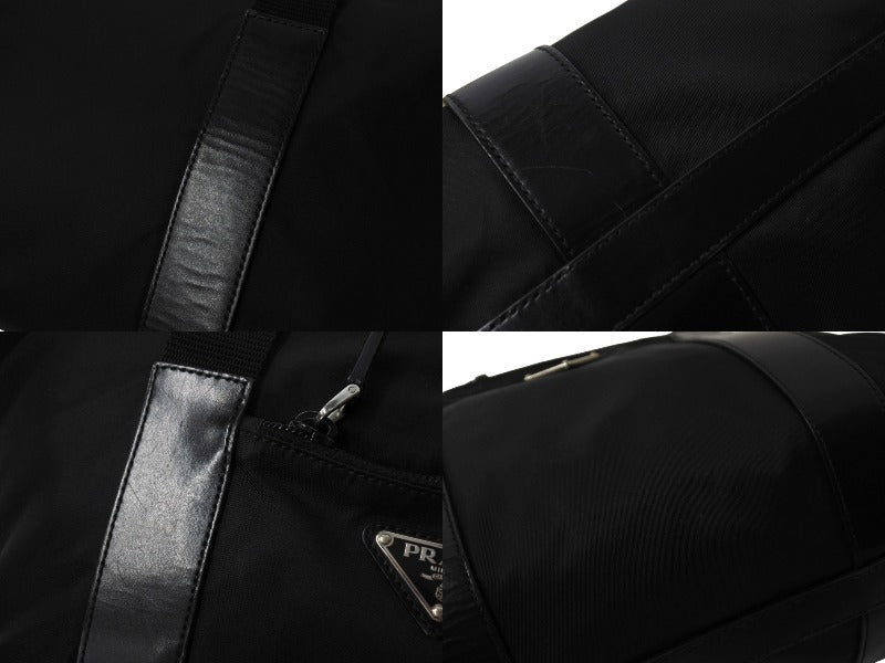 PRADA プラダ トライアングルロゴ ハンドバッグ テスートナイロン レザー イタリア製 ブラック シルバー金具 美品 中古 65551