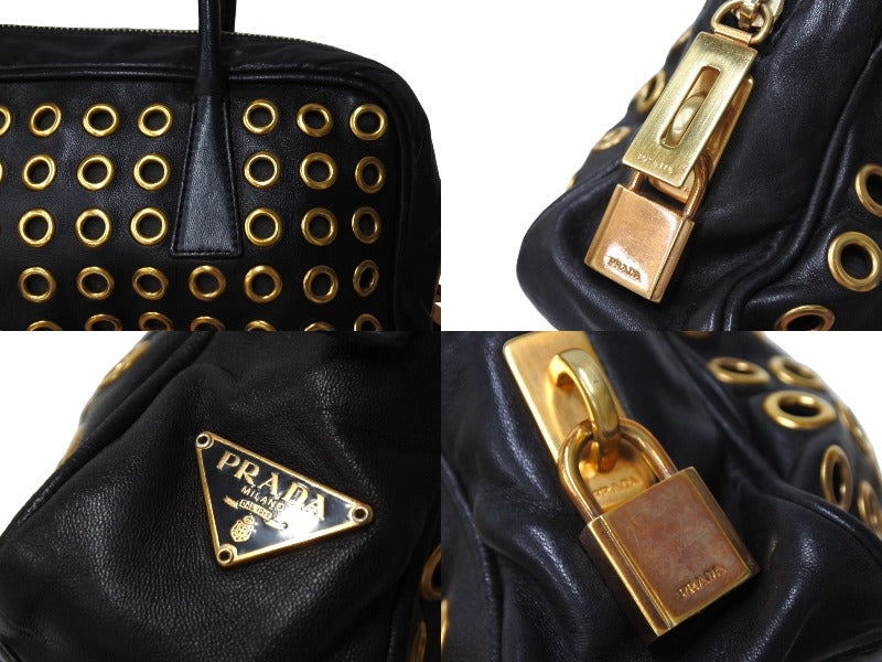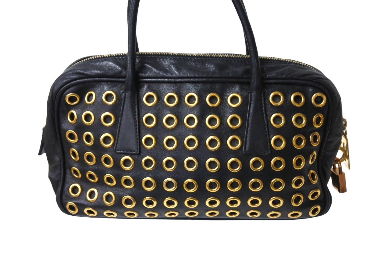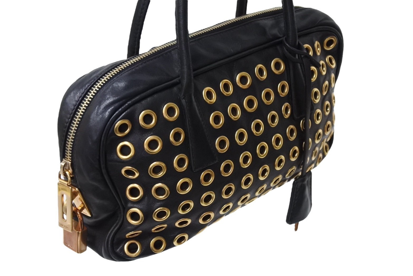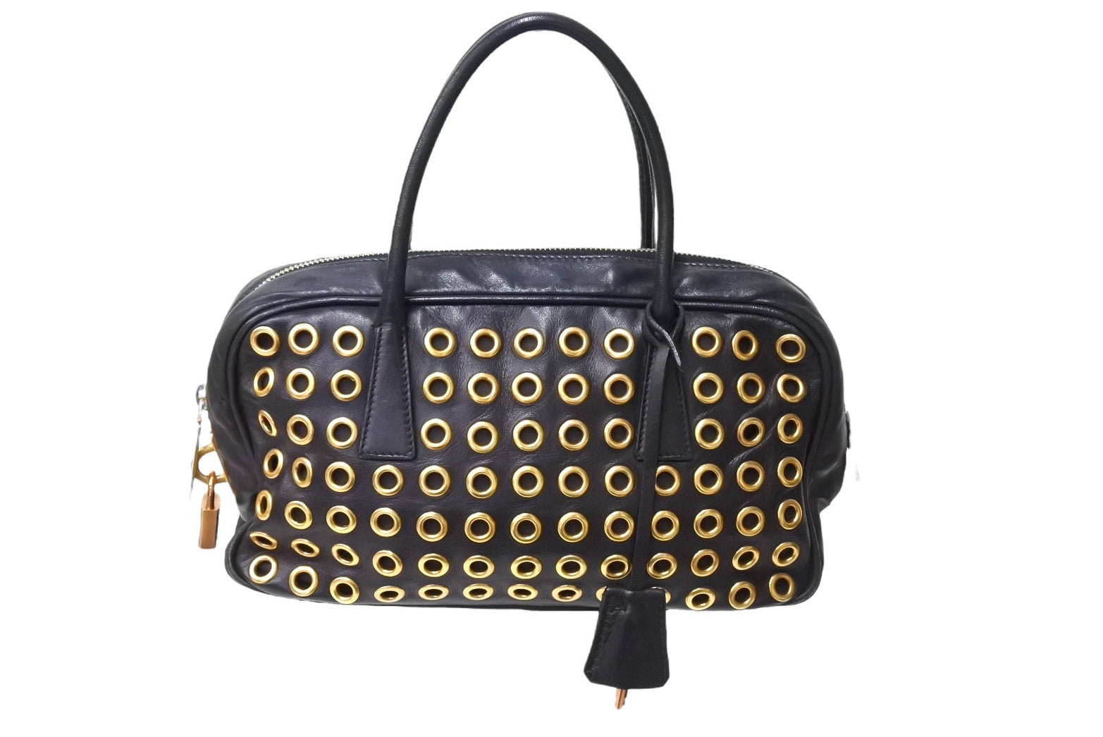 PRADA プラダ スタッズ ミニ ハンドバッグ トートバッグ イタリア製 レザー メタル ブラック ゴールド金具 良品 中古 66174