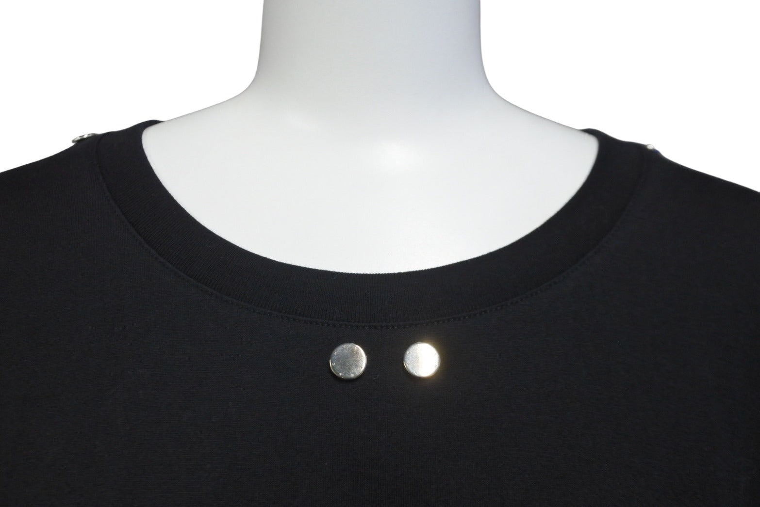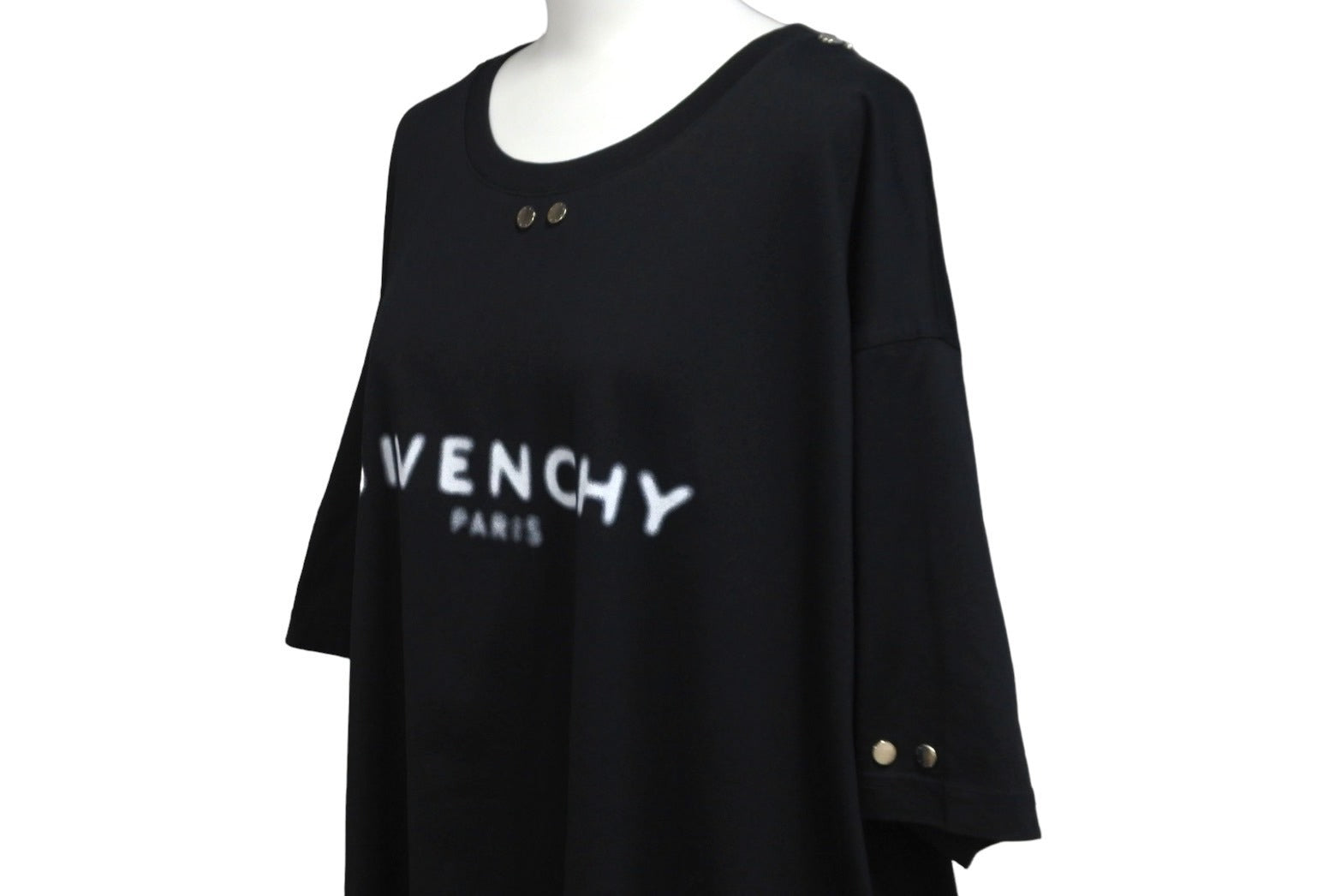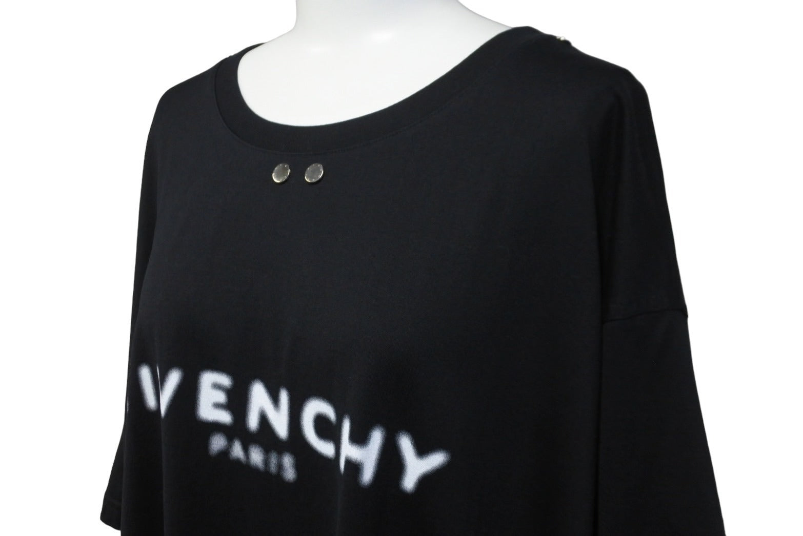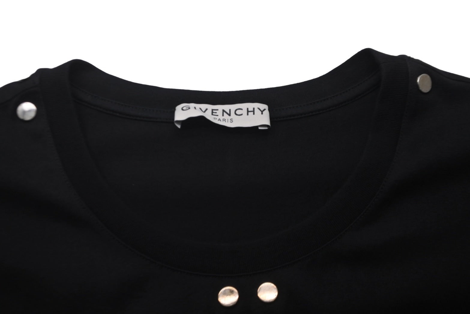 Givenchy ジバンシー 半袖金具 トップス ロゴプリント ロゴ金具 コットン ブラック ホワイト シルバー 美品 中古 57708