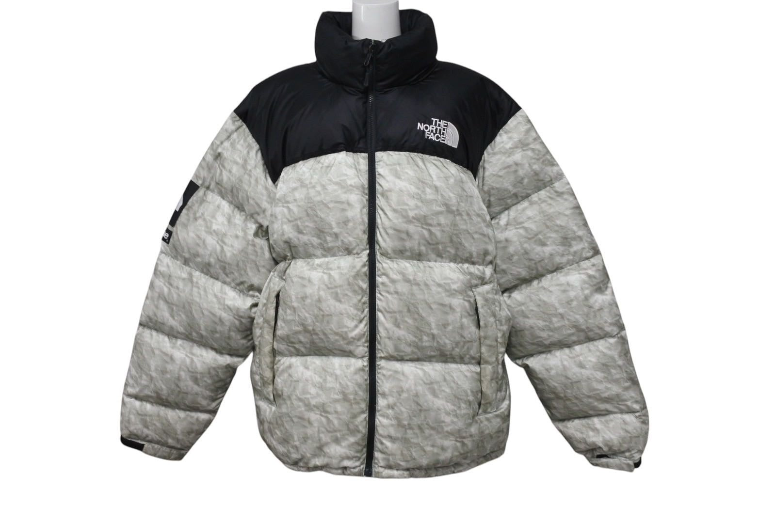 毎シーズンリリースされる『ノースフェイス』との大人気コラボシリーズです。モデルにはダウンジャケットの定番『ヌプシジャケット』を採用し、ペーパープリント柄をあしらった一枚になります。