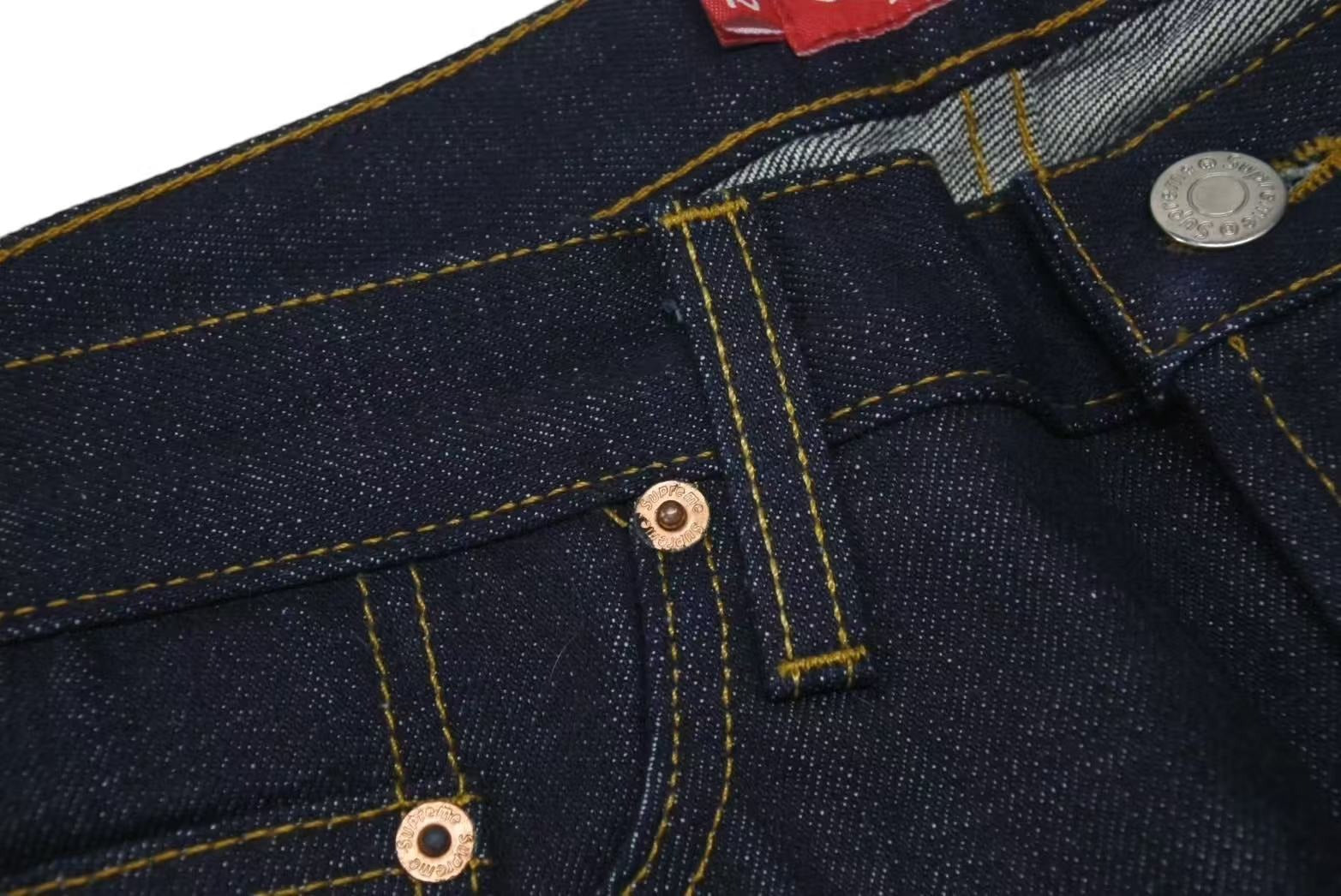 ボタンフライ、シングルコインポケット、銅製リベット、裏面にSupremeロゴのレザーパッチを備えたクラシックな5ポケットスタイルでSupremeの定番かつ人気アイテムです。