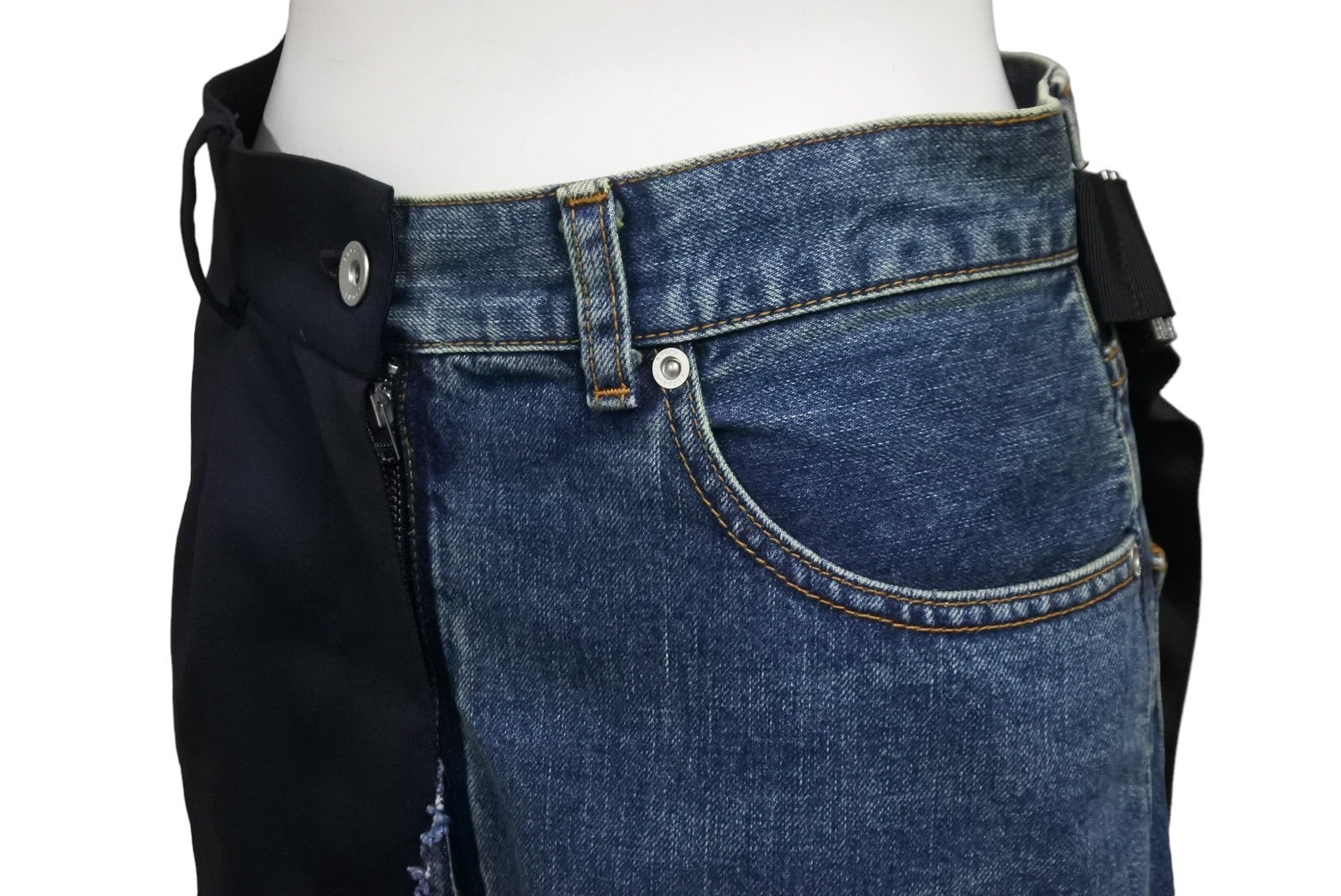 デニムとスカートが再構築された恋愛デザインのアイテムです。