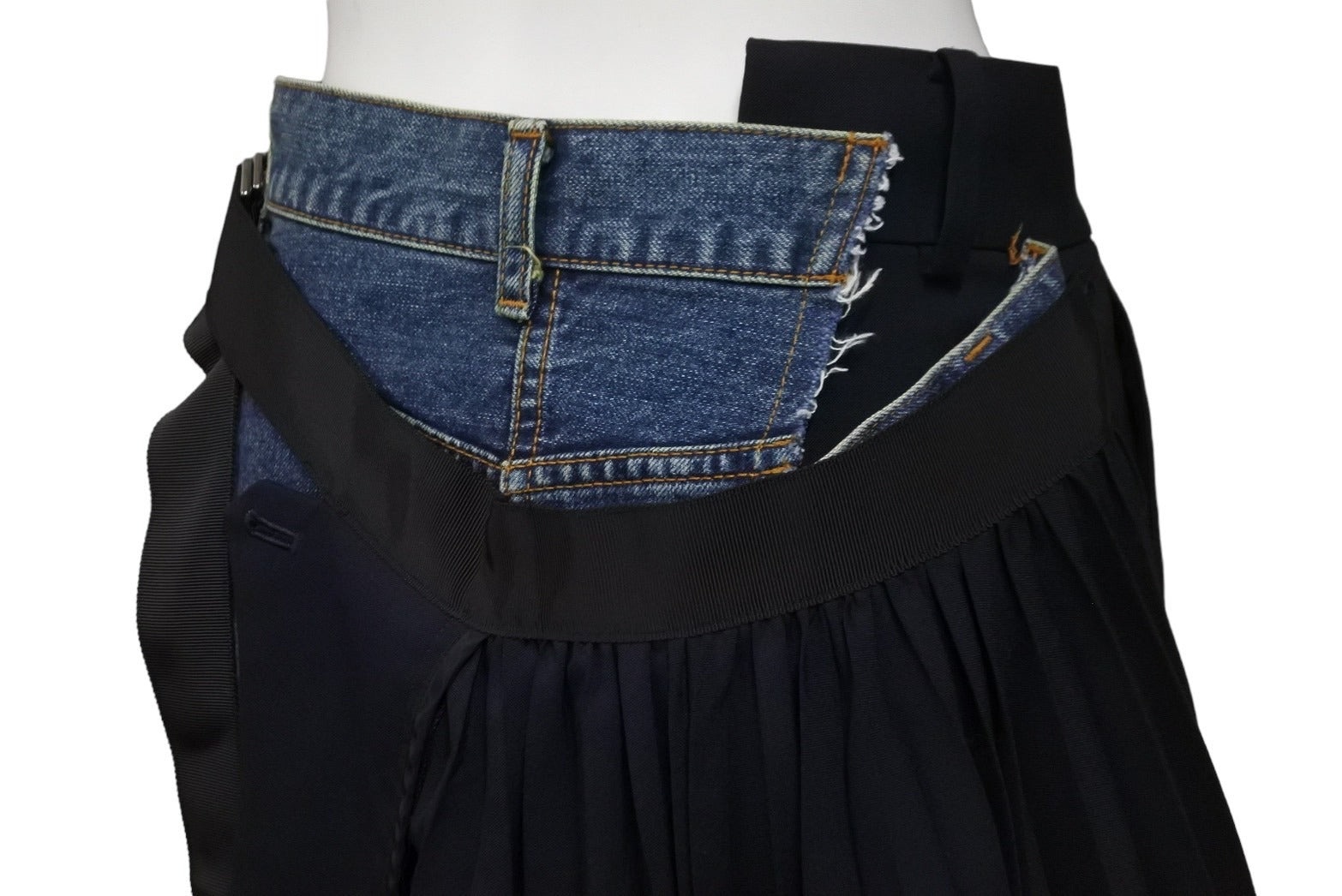Sacai サカイ スカート再構築デニムパンツボトム 21 -05713 ブルーブラック サイズ0 美品 中古 54615