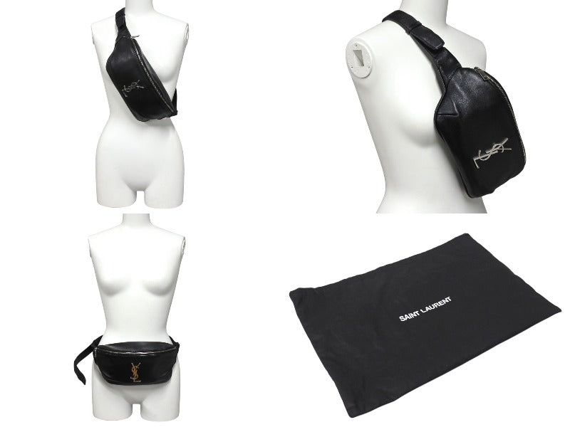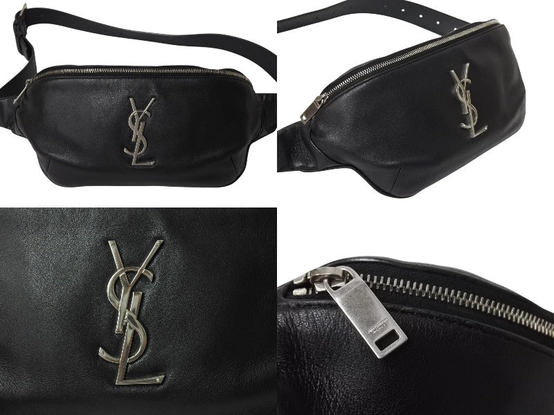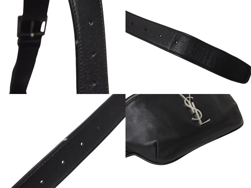 メタルのYSLロゴをあしらった、レザーストラップの付いたベルトバッグです。