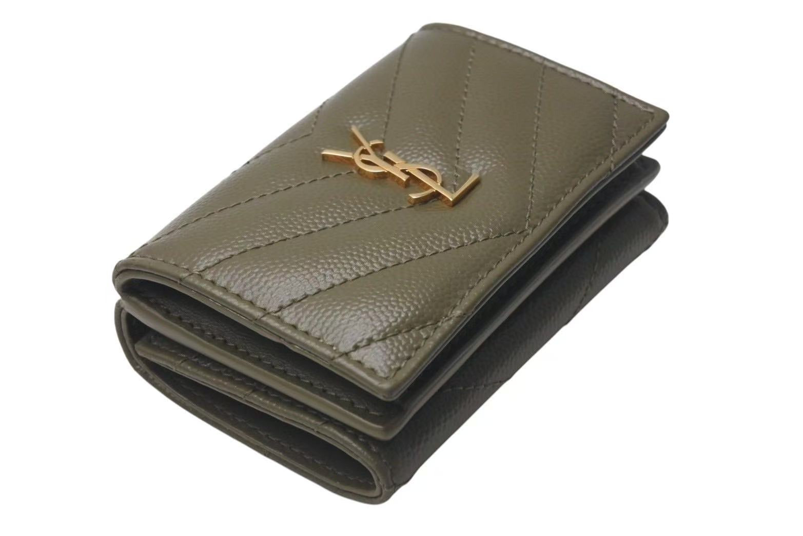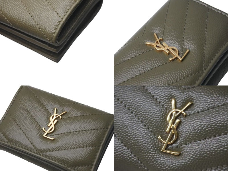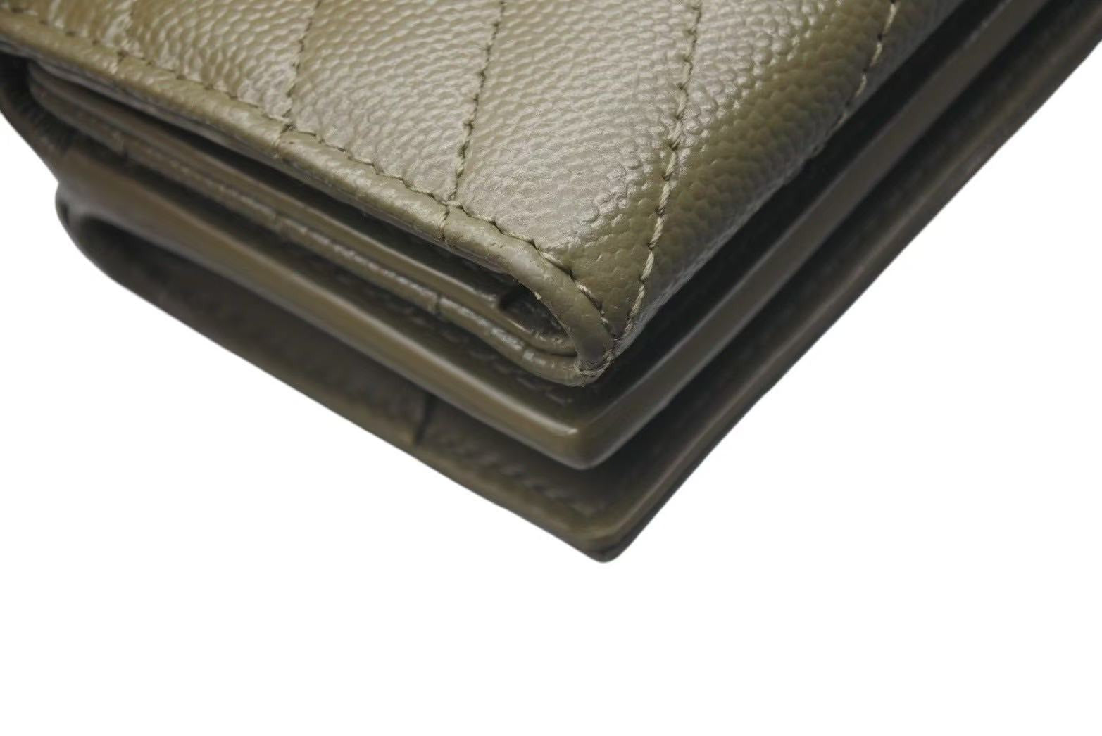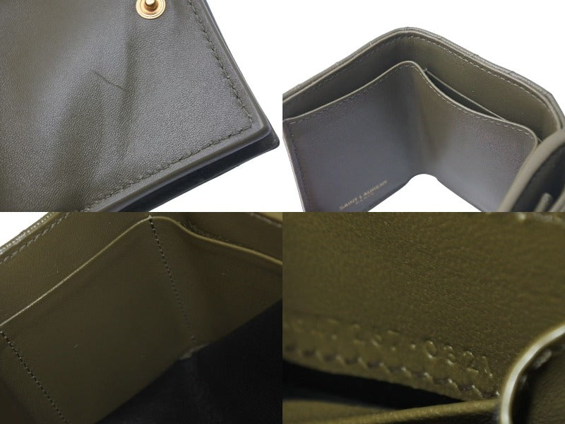 極美品 SAINT LAURENT サンローラン 三つ折り財布 オリガミ マトラッセ タイニーウォレット カーキ ゴールド金具 中古 4c074454