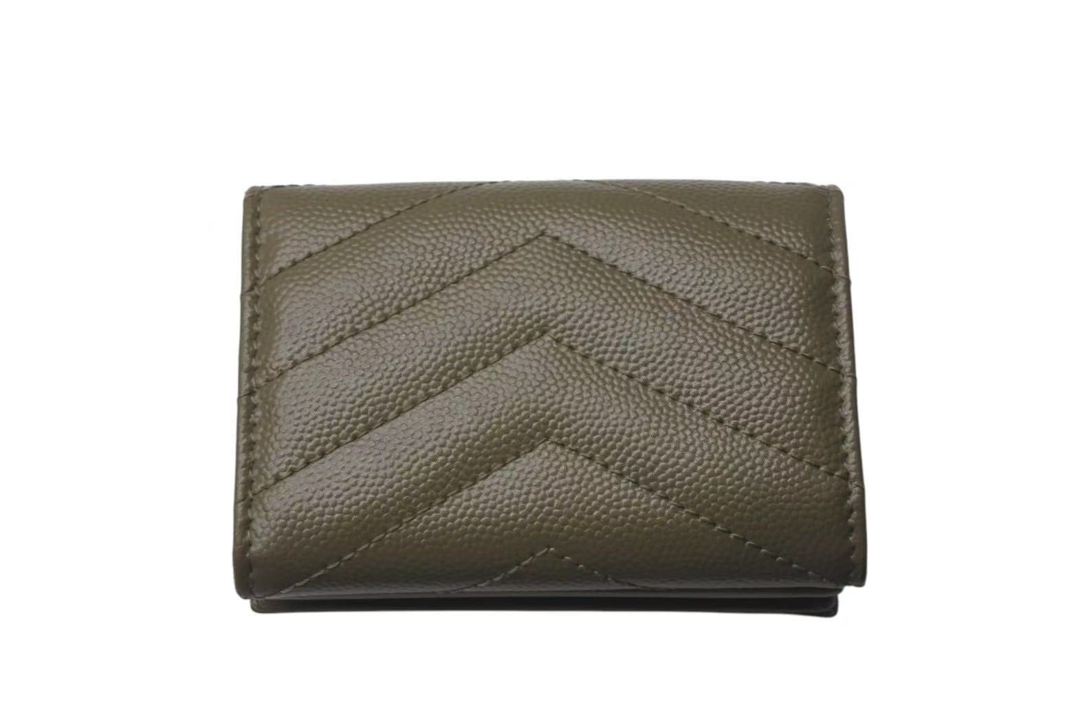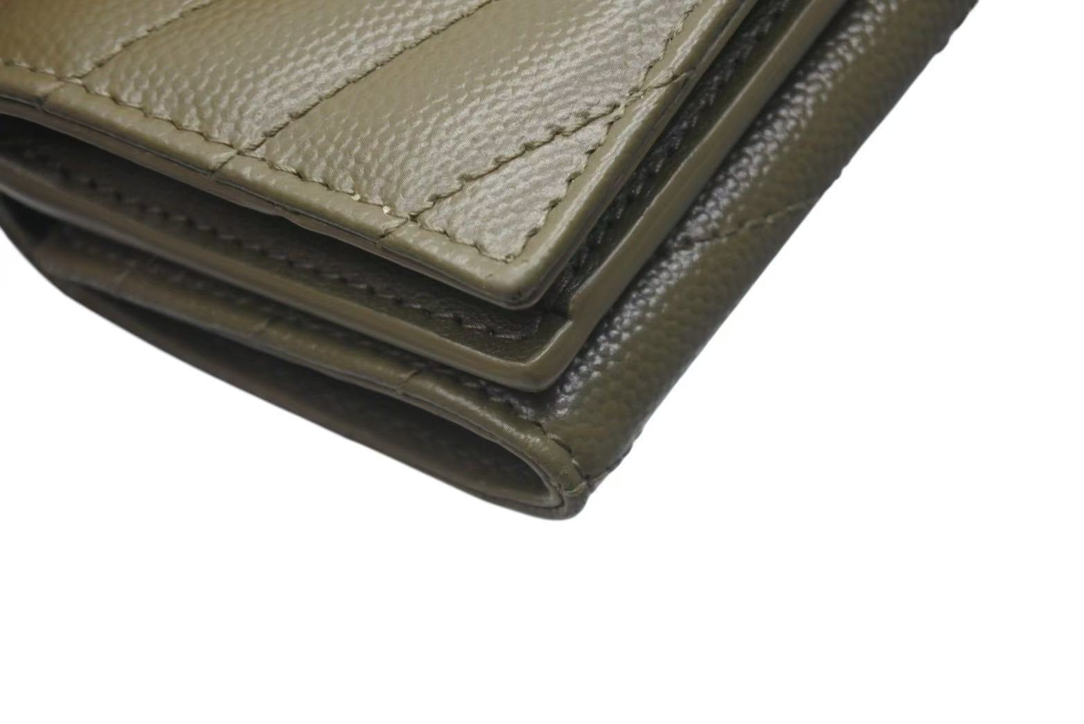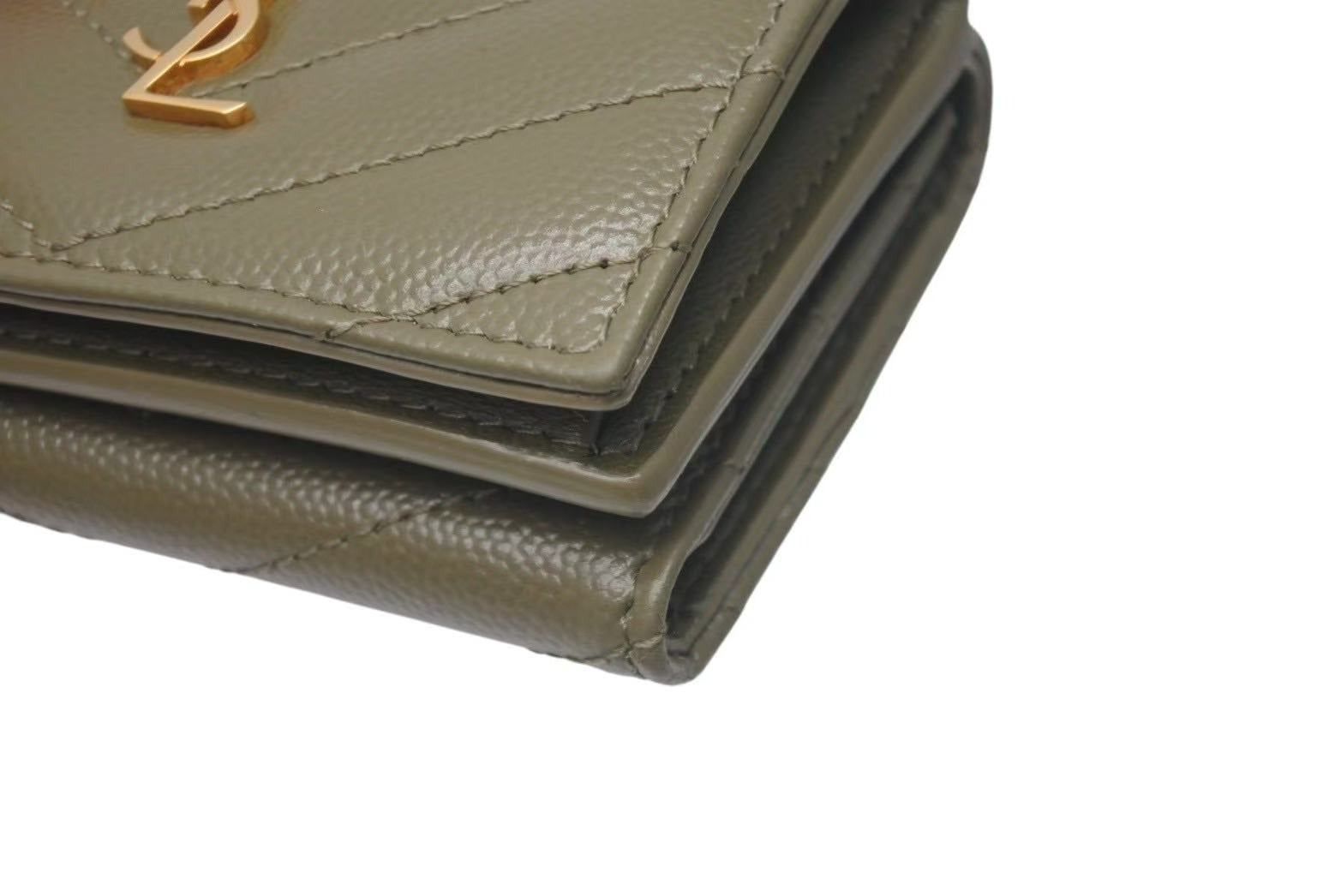 極美品 SAINT LAURENT サンローラン 三つ折り財布 オリガミ マトラッセ タイニーウォレット カーキ ゴールド金具 中古 4c074454