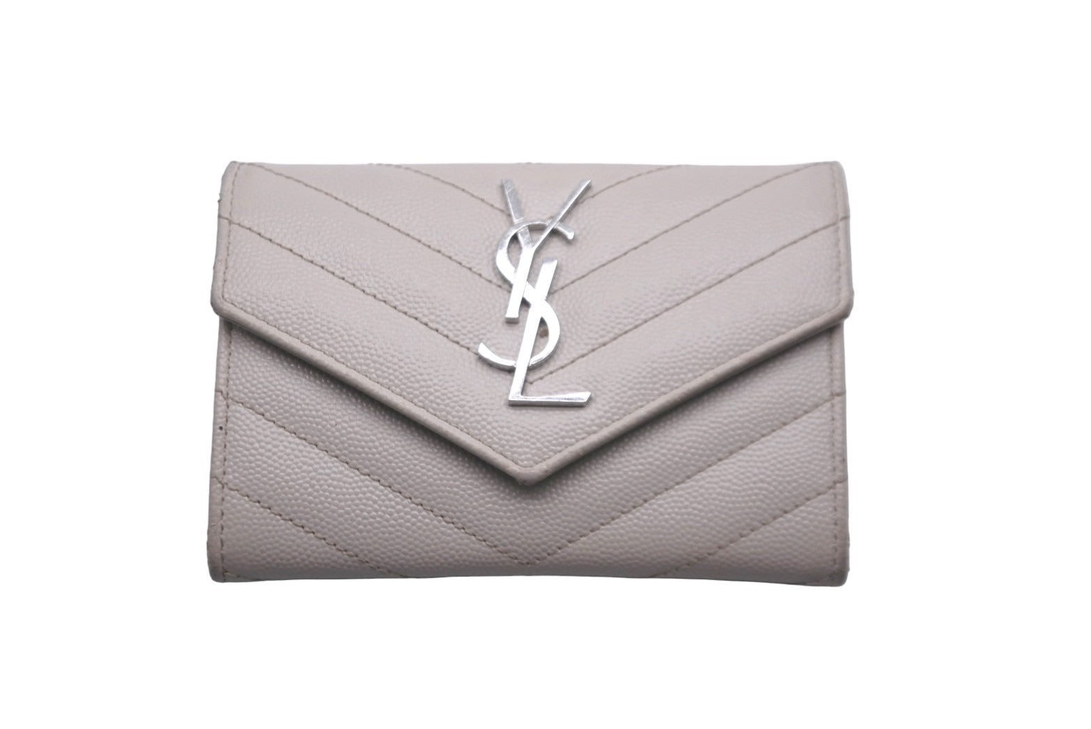 YVES SAINT LAURENT イヴ・サンローラン 二つ折り財布 モノグラム スモール エンベロープウォレット シルバー金具 美品 中古 58331