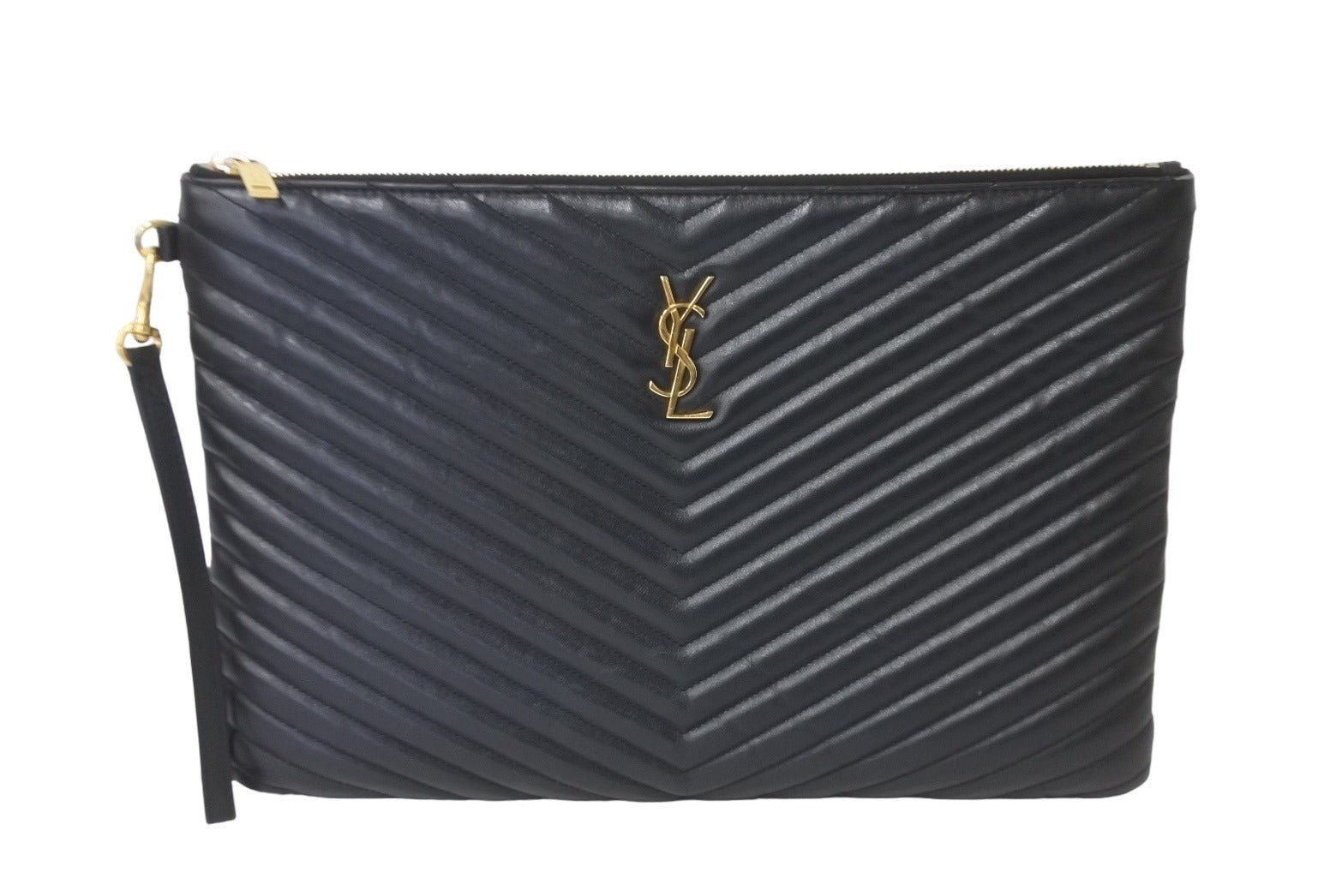 V字にステッチが入ったシャープな印象のサンローラン・クラッチバッグ。
