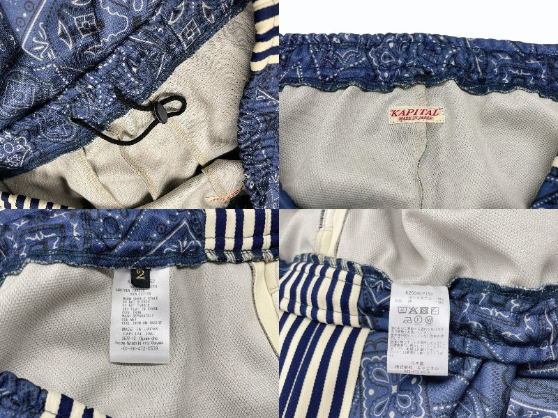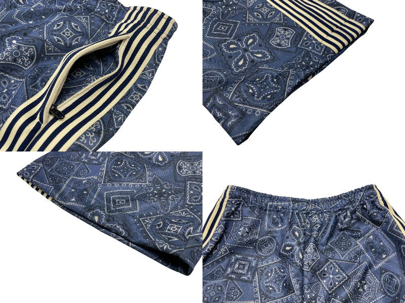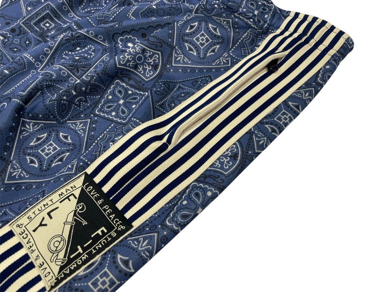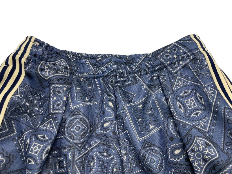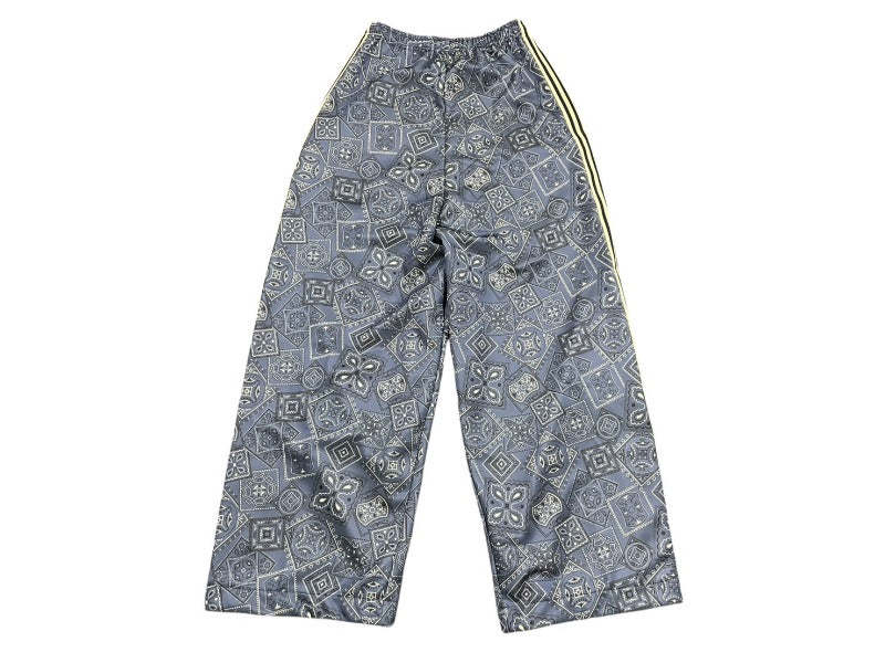 ヴィンテージバンダナに見られるクッキー柄のトラックパンツ。 柔らかくなスムース組織のジャージー素材を使用しています。 ゆったりとしたバギーシルエットになっています。 ウエスト周りはインタックを入れ、コンパクトに仕上げました。 ウエストはゴムとドローコードになっています。