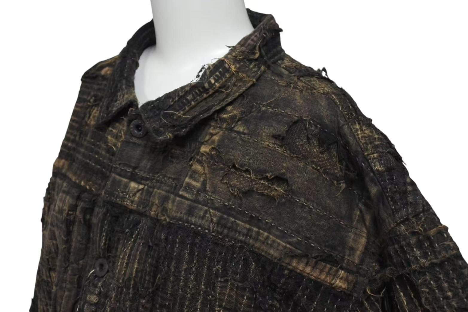 KAPITALの加工技術で襤褸を再現したオリジナルファブリック『BORO』を使用した1STジャケット。従来の「BORO 1ST JKT」の裏地を襤褸をプリントしたレーヨン生地仕様らしく、着心地を軽く、個性的なライトアウターとして仕上げました。