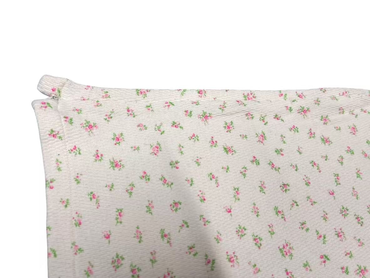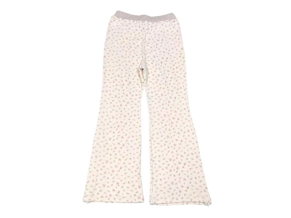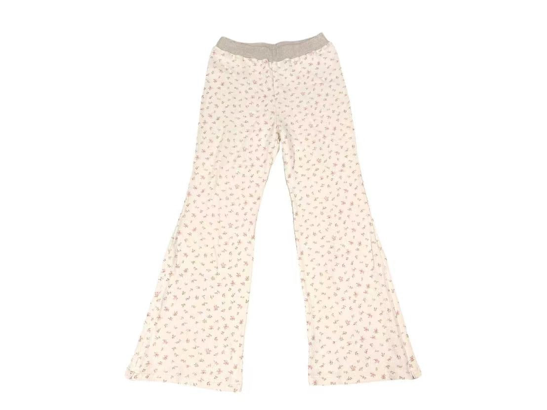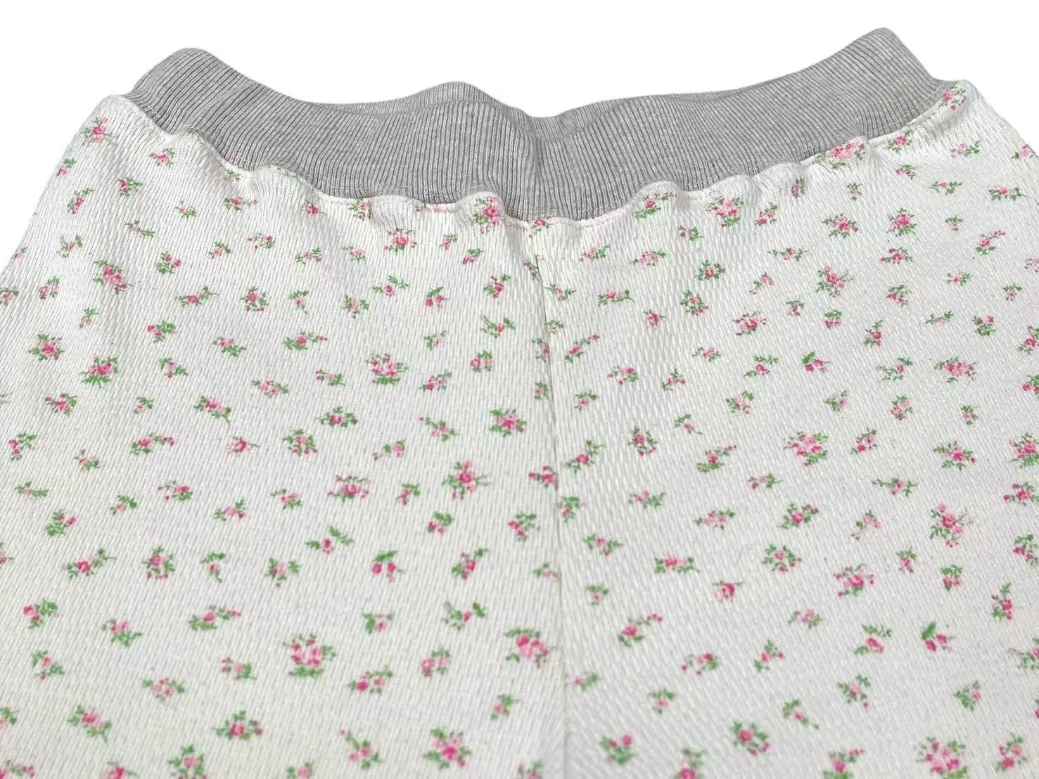 小花柄がプリントされた、ワッフル生地を使用したボトムスです。
