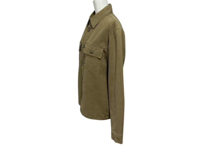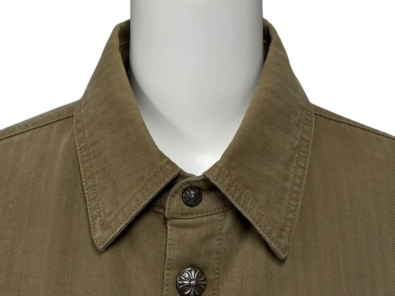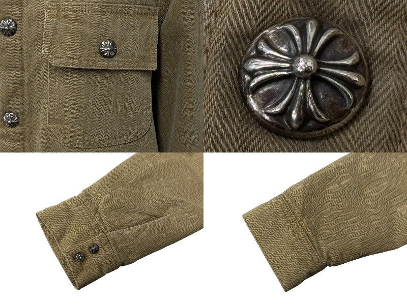 CHROME HEARTS クロムハーツ WORK DOG SHIRTS ワークドッグ シャツ ジャケット クロスボール ヘリンボーン ブラウン サイズS 美品 中古 4b008045