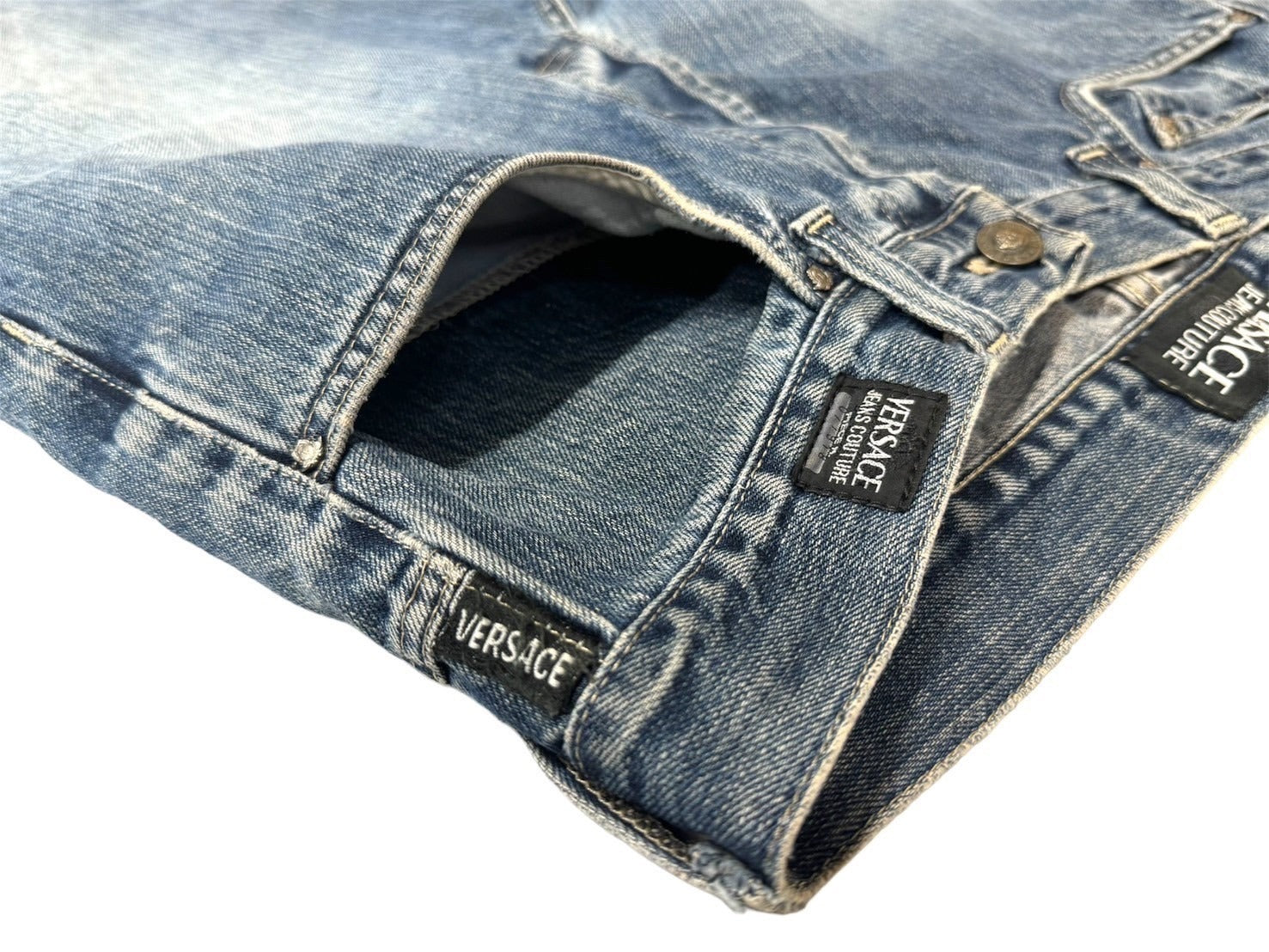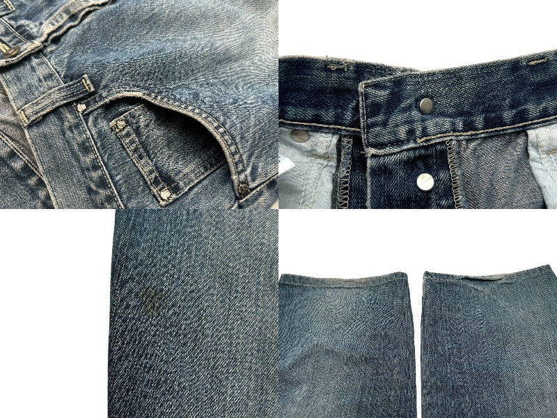 背面胸付近にシミあり。ウエスト、ポケット、股、裾部分にスレによる擦り切れあり。タバコの匂いあり。全体的に色落ちあり。中古品としてご使用いただける状態です。