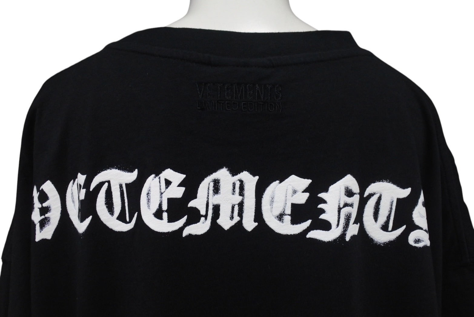 極美品 VETEMENTS ヴェトモン 21SS アナーキー ゴシック ロゴ 半袖Tシャツ ブラック コットン サイズS UE51TR640B 中古 4c075506