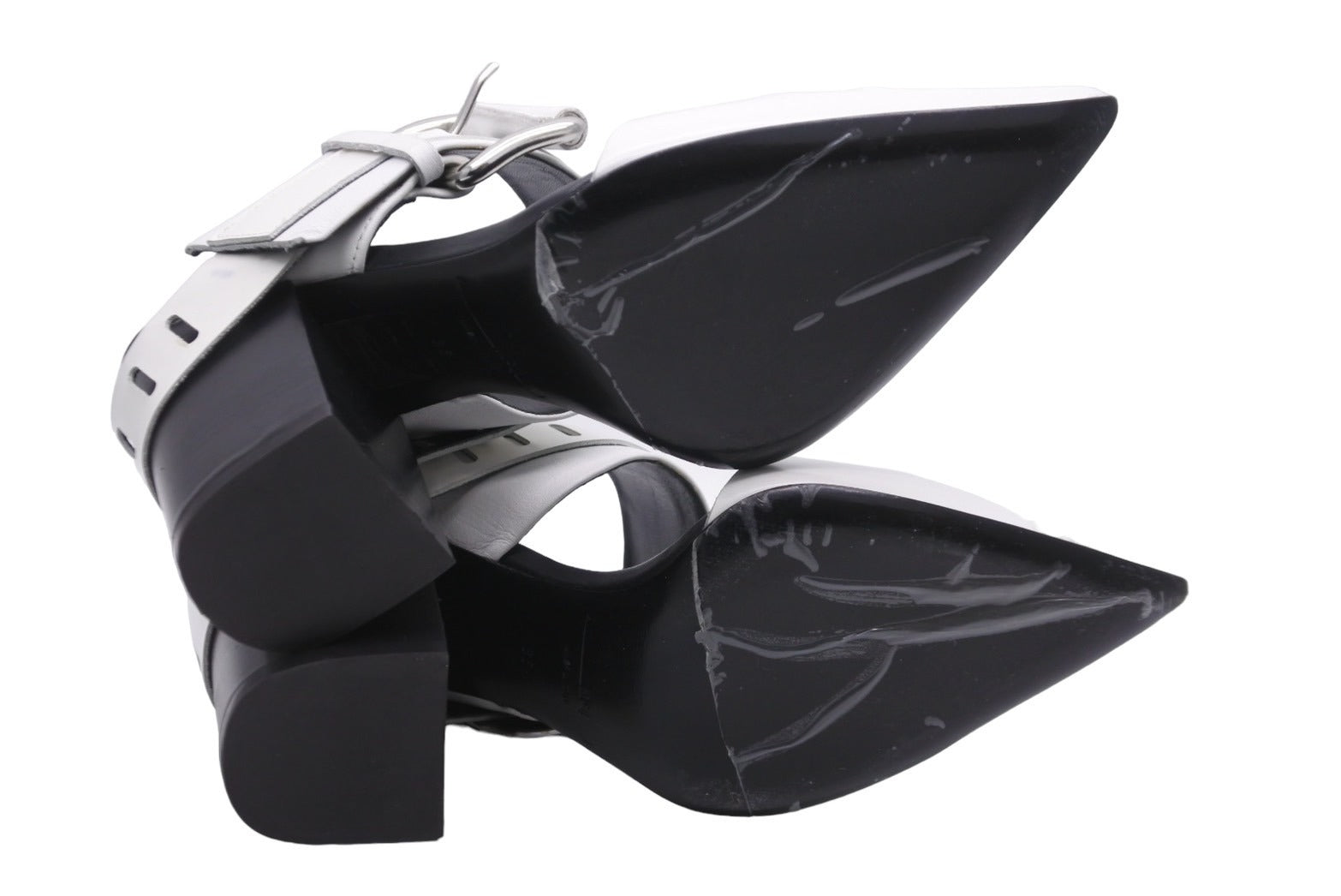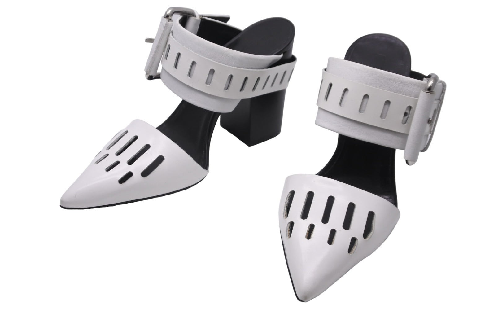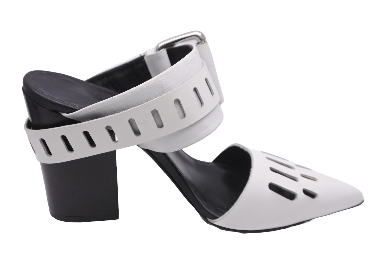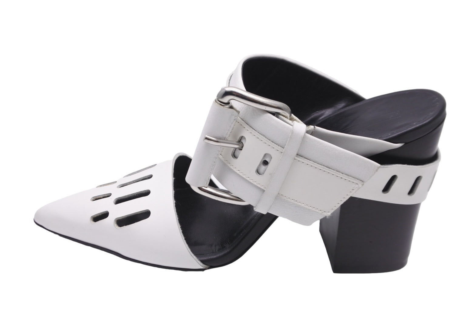 アレキサンダー マックイーン アレキサンダーマックイーン サンダル ミュールヒール ホワイト ブラック 35 シルバー金具 美品 中古 56635