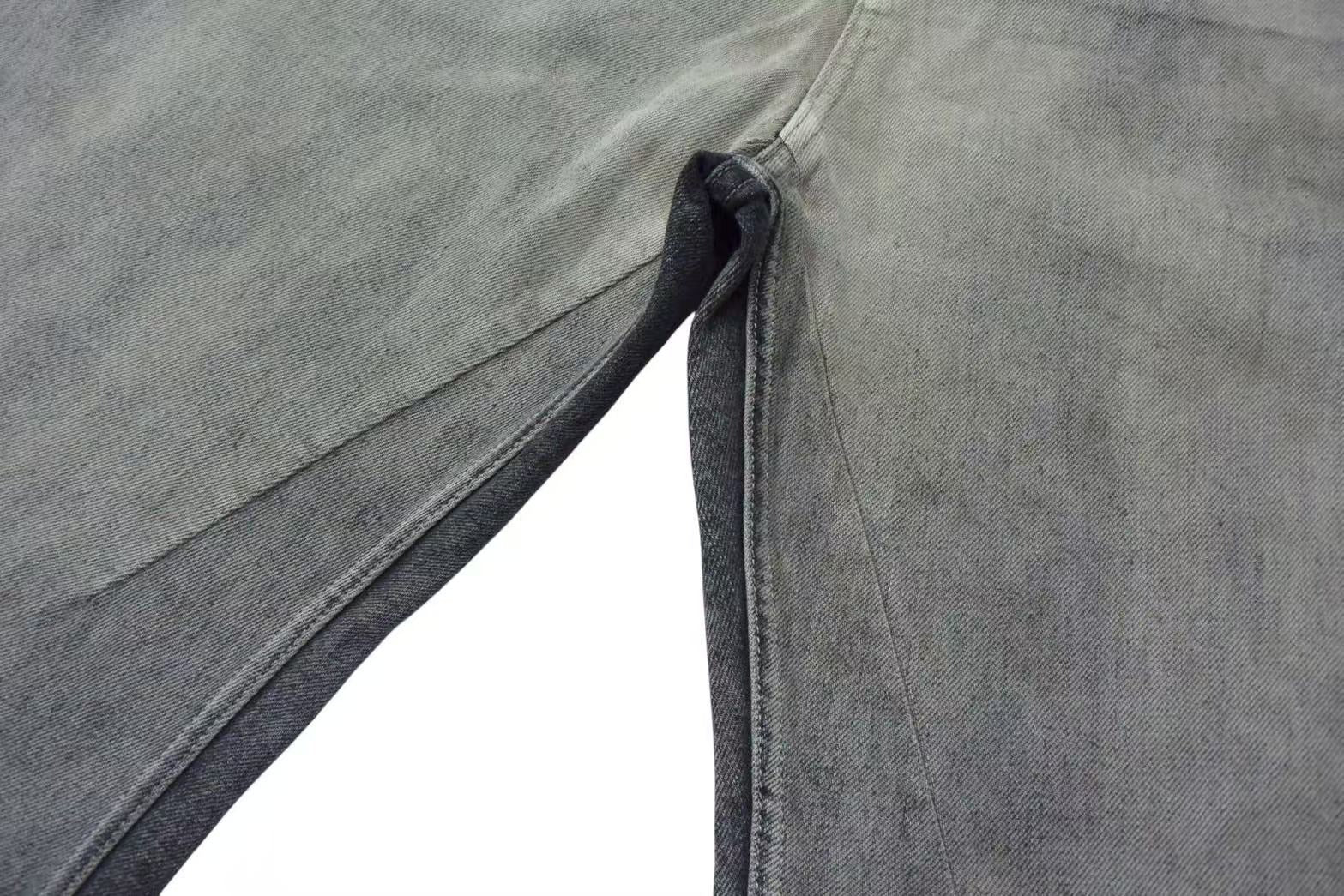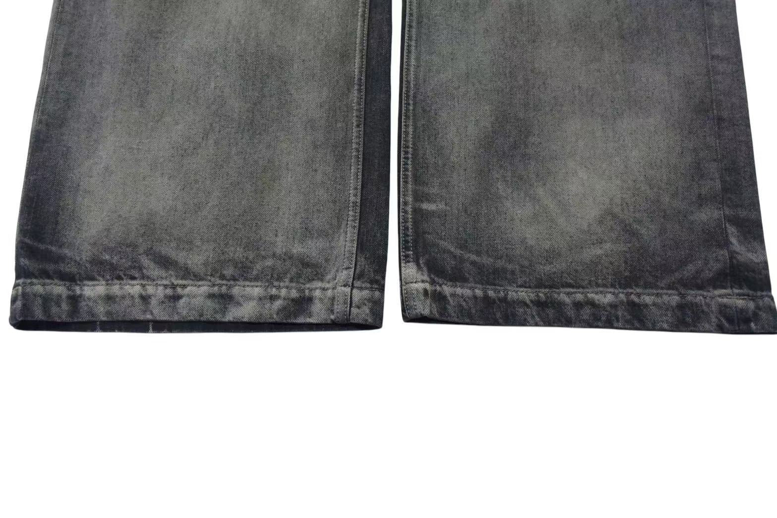 ブラックデニムをベースに加工されたフェード感が美しいデニムです。腿部の生地をダーツでつまむリックのアイコンシルエットをバギージーンズにも採用しています。赤耳のノンストレッチ素材で裾の仕上げはジーンズとゆうよりチノパンやペインターパンツなどのワークパンツに近い仕上げです。色の陰影が本当に美しく後追いのフォロワー商品の加工とは一線を画し、ヴィンテージデニムやそれらから派生した加工とは違いRIckらしい退廃感が漂う加工だと思います。