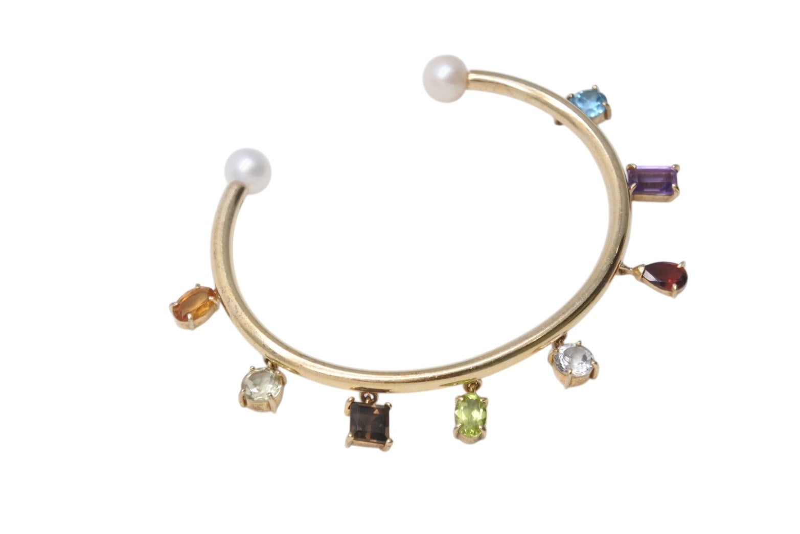 マルチカラーのストーンが手首の動きに合わせてきらきらとゆれます。