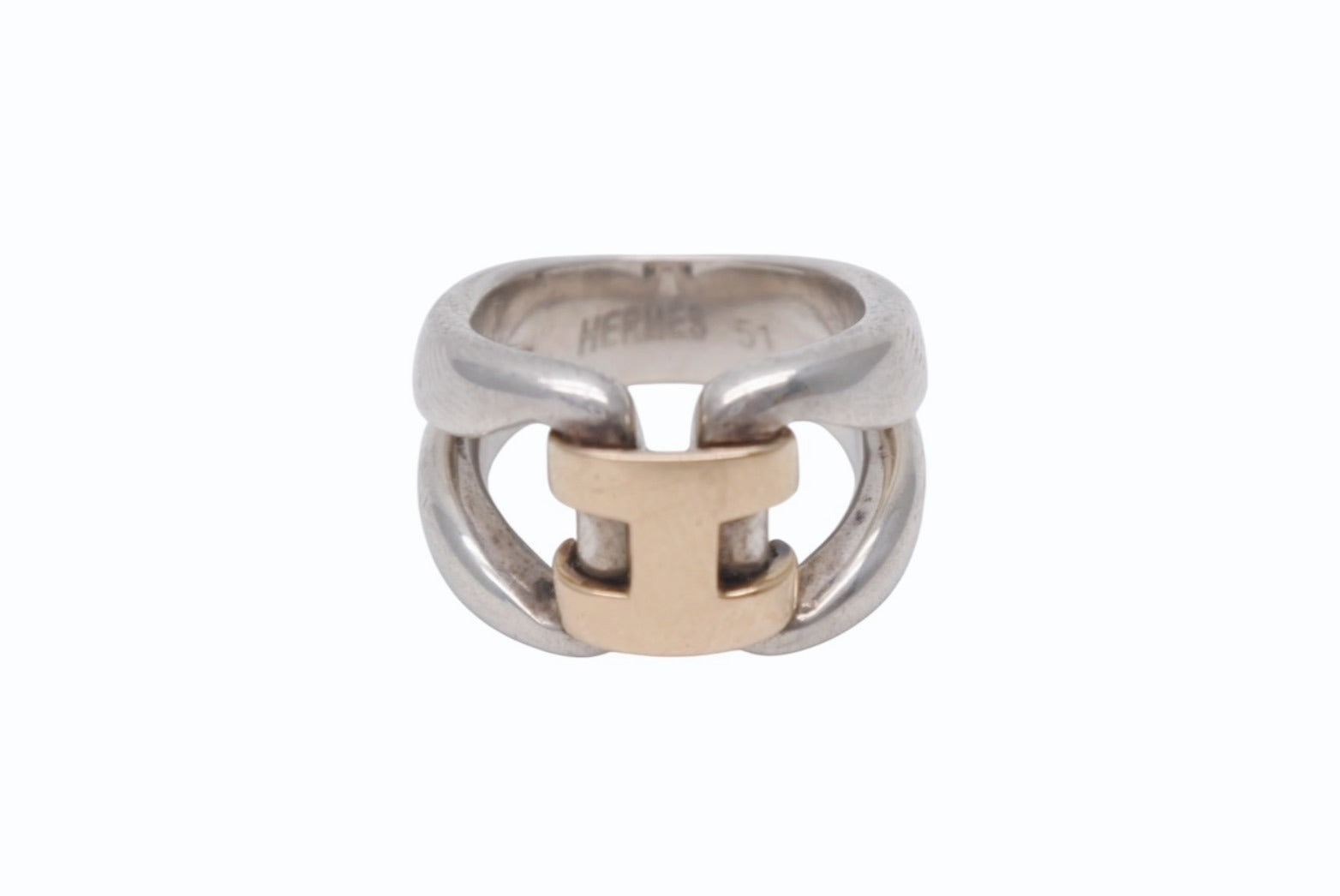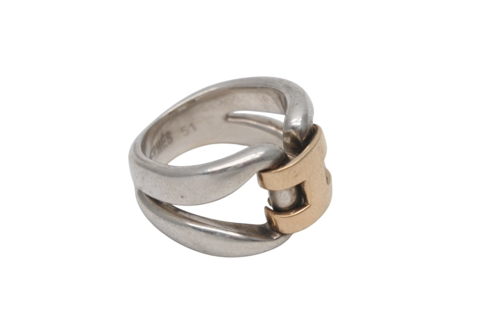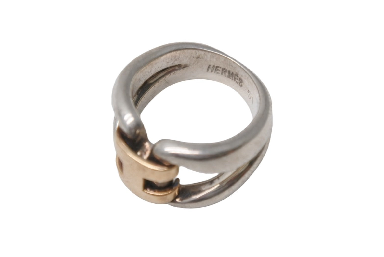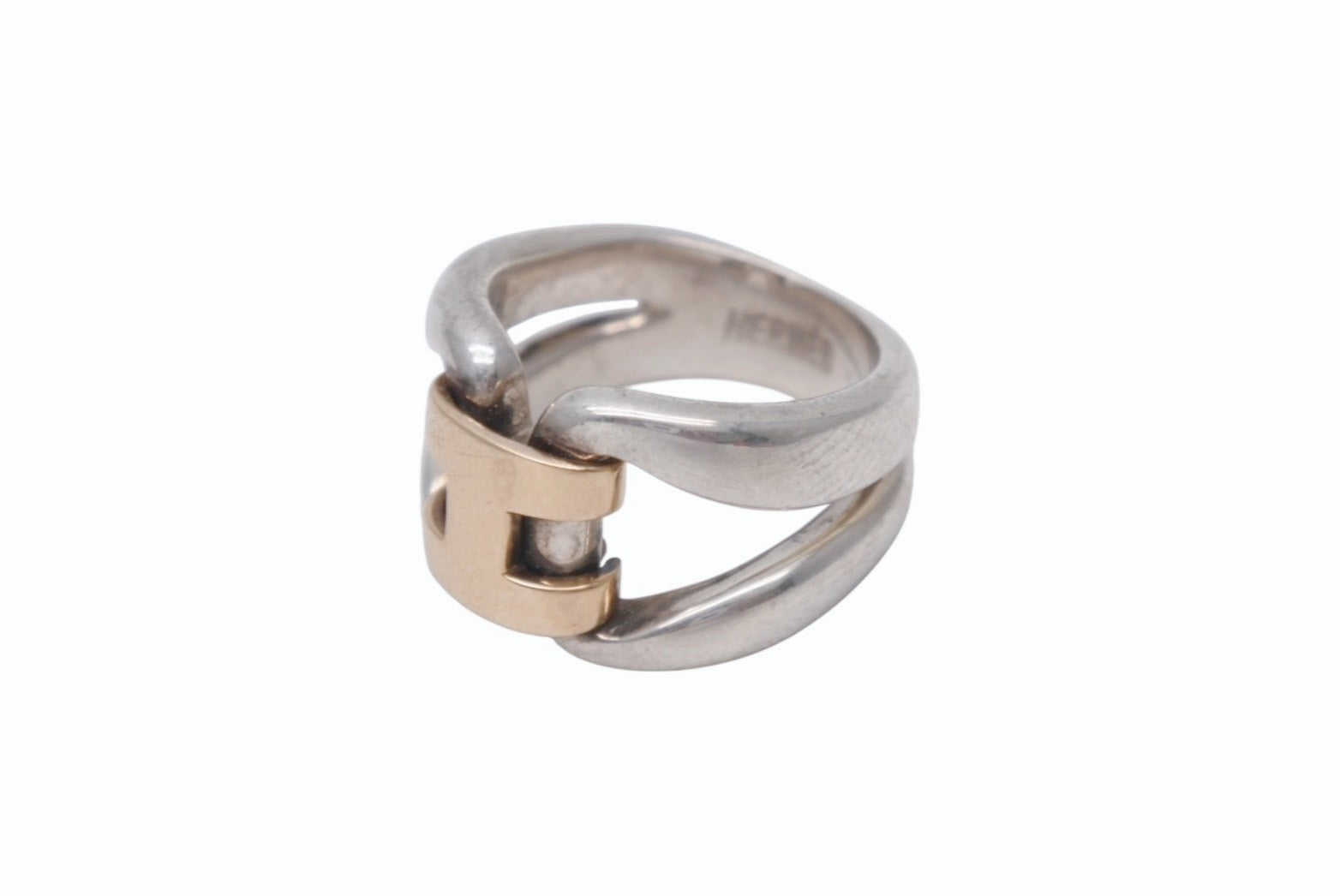 HERMES エルメス ヒストリーリング シルバー925 K18ゴールド シルバー ゴールド 重量約10.6g サイズ8.5号 美品 中古 4b006385