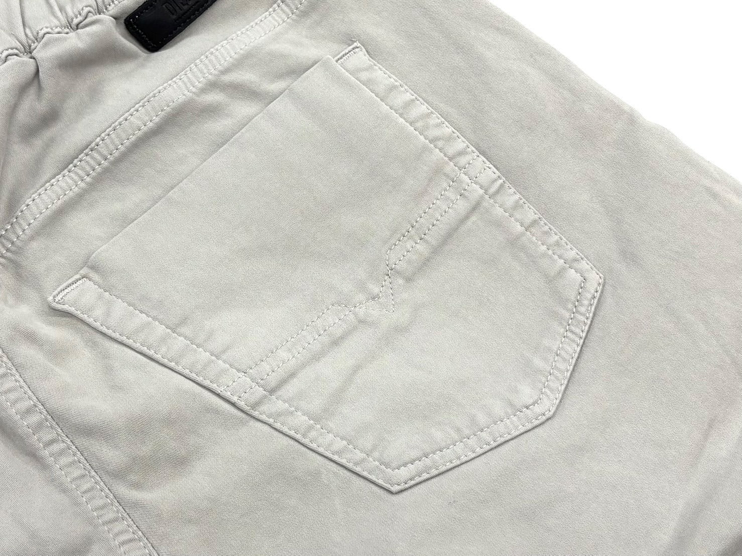 背面ポケットの上に革地のミニロゴが刺繍されています。