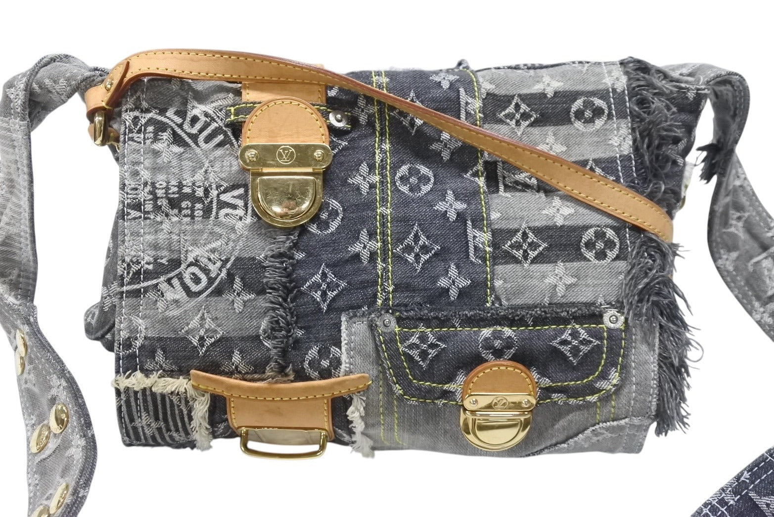マーク・ジェイコブスがデザインした2007年春夏コレクションで、モノグラム柄のヴィンテージ風デニム素材をパッチワークした斬新なデザインとなっている人気の商品です。