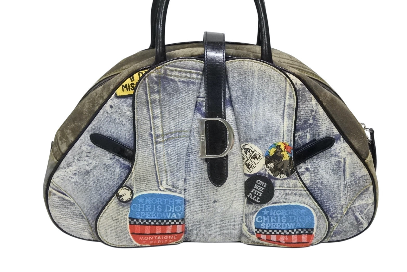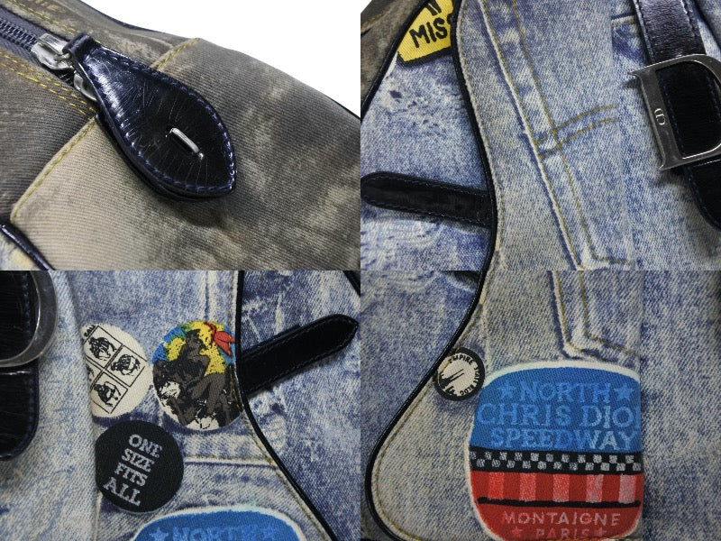 CHRISTIAN DIOR クリスチャンディオール ダブルサドル ボストンバッグ Y2K デニム ブラック ブルー マルチカラー 美品 中古 4b008140