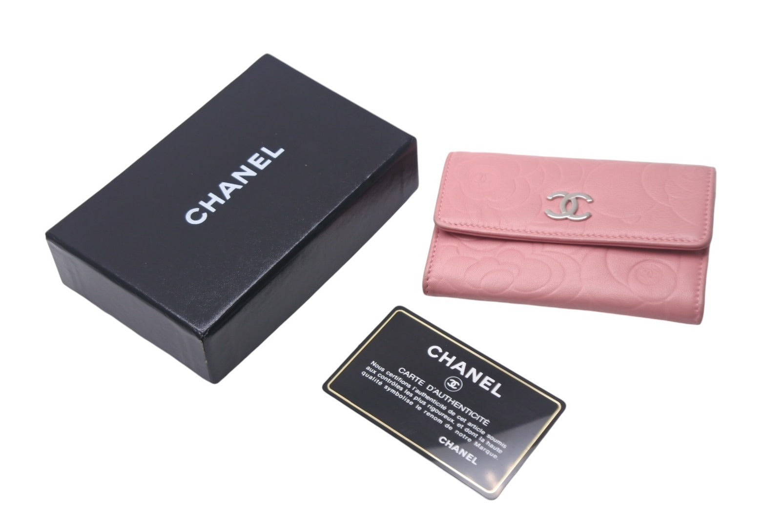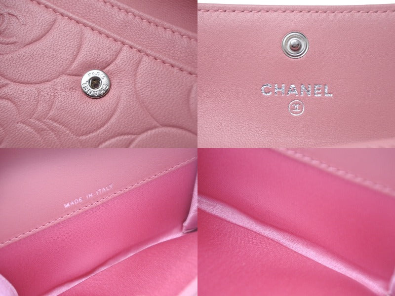 CHANEL シャネル カメリア カードケース 二つ折り財布 ラムスキン ピンク シルバー金具 A50088 14番台 美品 中古 4c068524