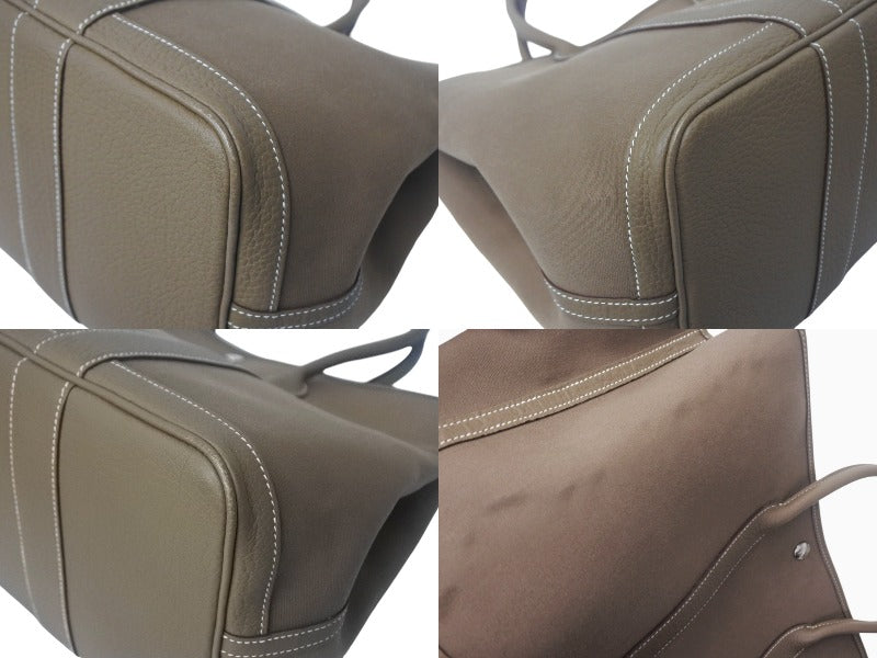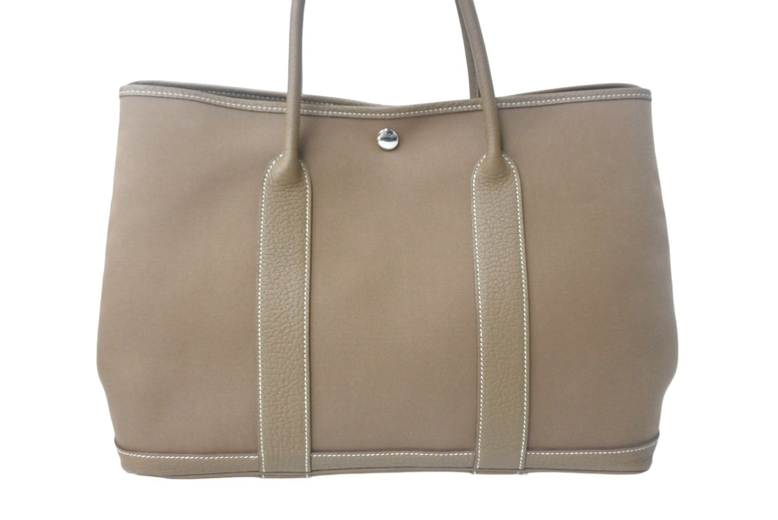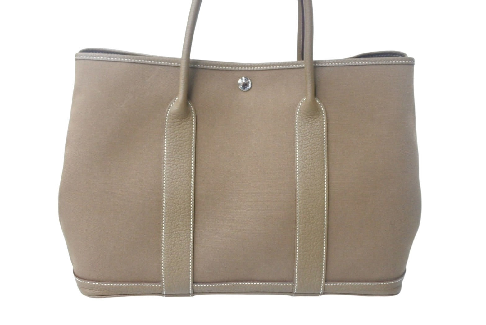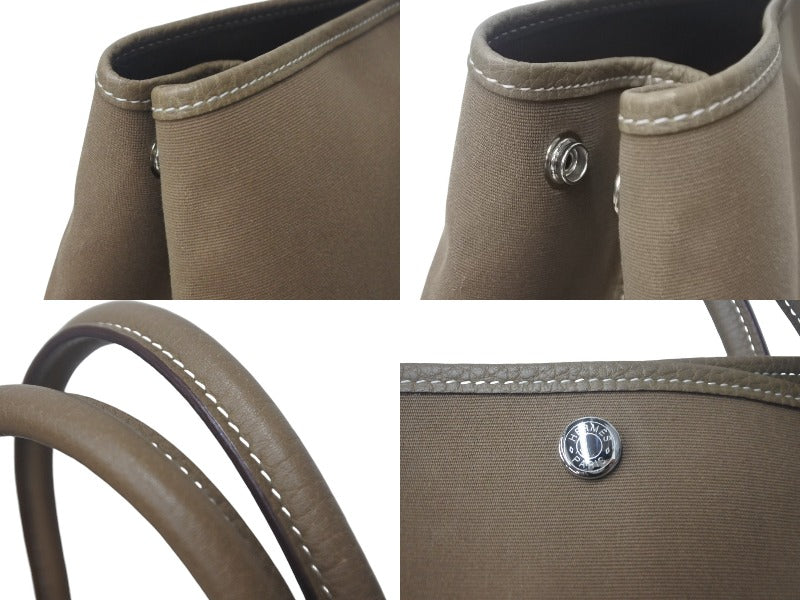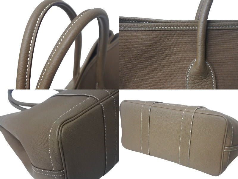 HERMES エルメス ガーデンパーティ PM トートバッグ エトゥープ ネゴンダ トワルオフィシエ シルバー金具 美品 中古 4c069014