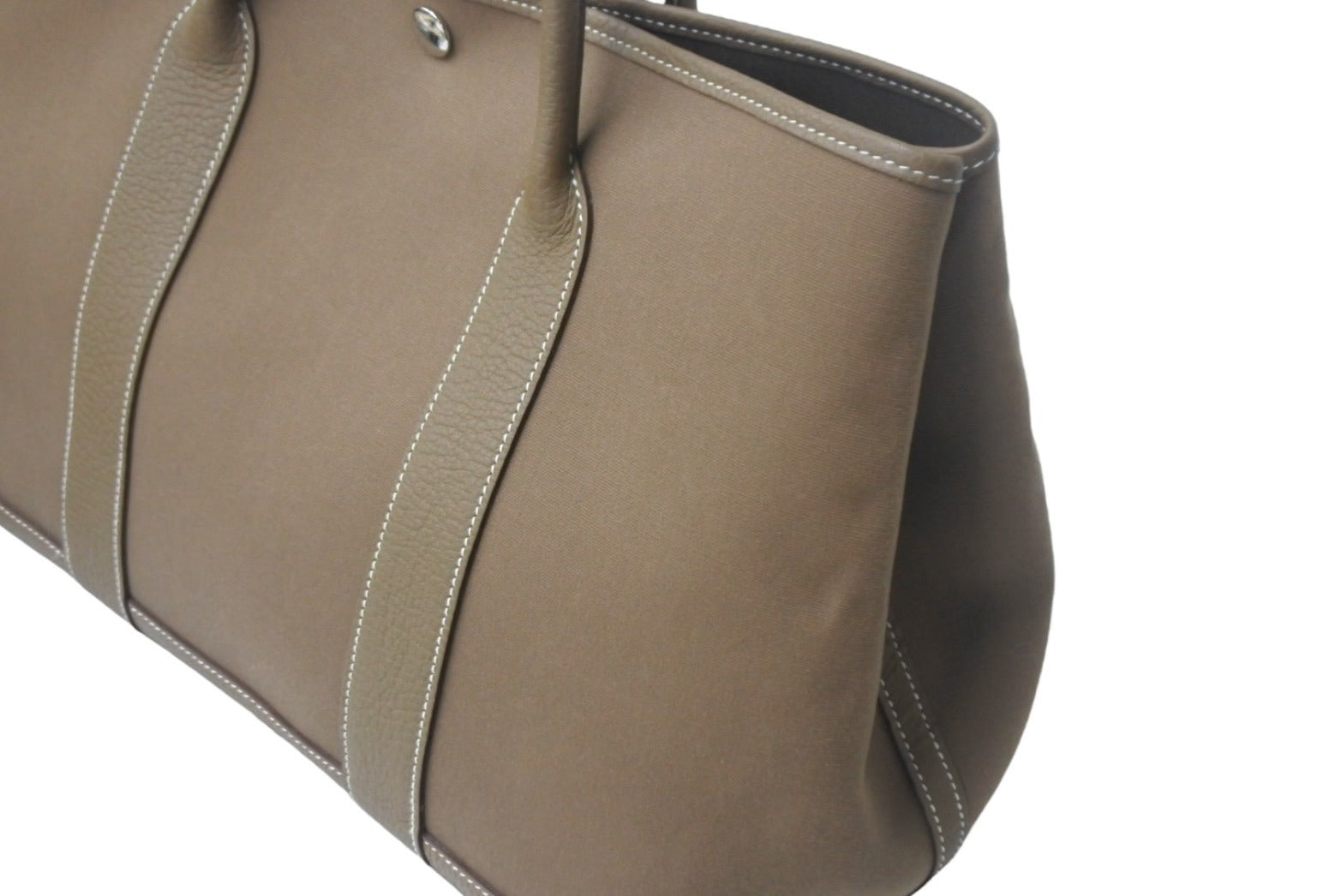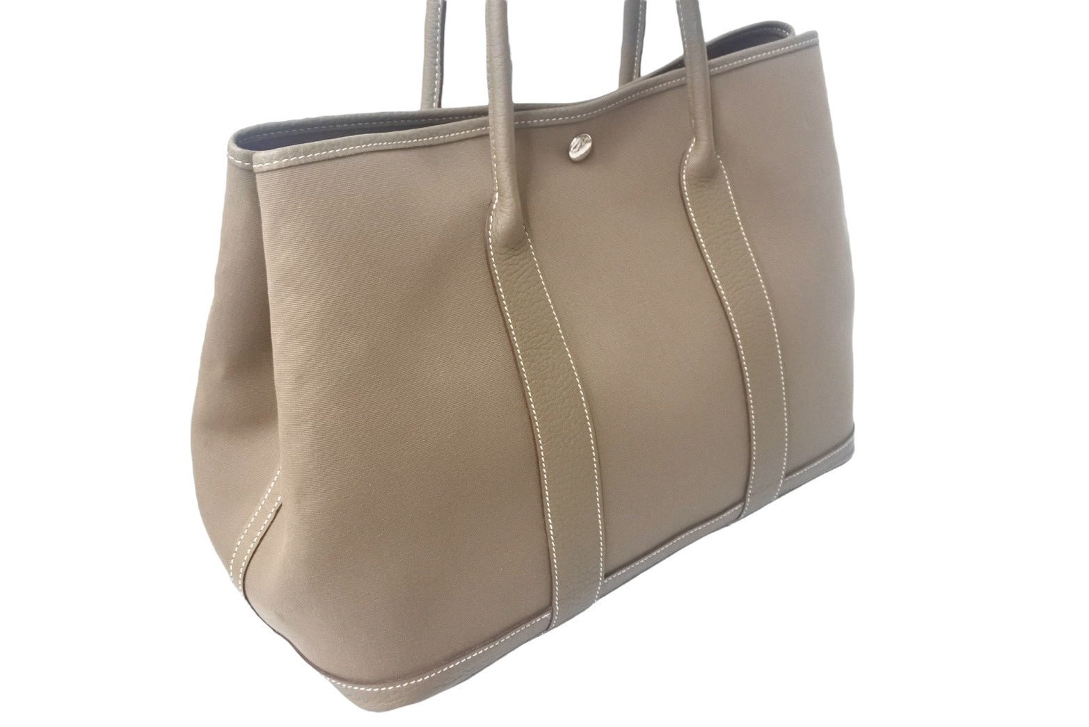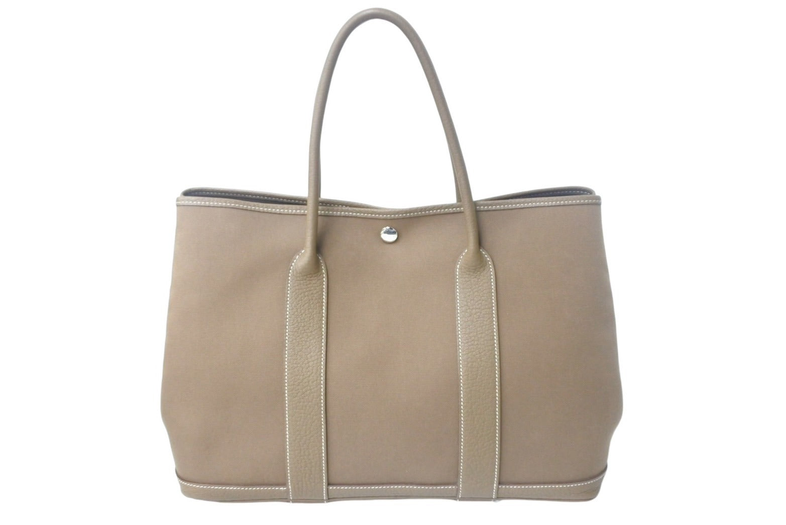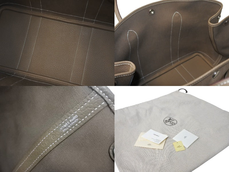 HERMES エルメス ガーデンパーティ PM トートバッグ エトゥープ ネゴンダ トワルオフィシエ シルバー金具 美品 中古 4c069014