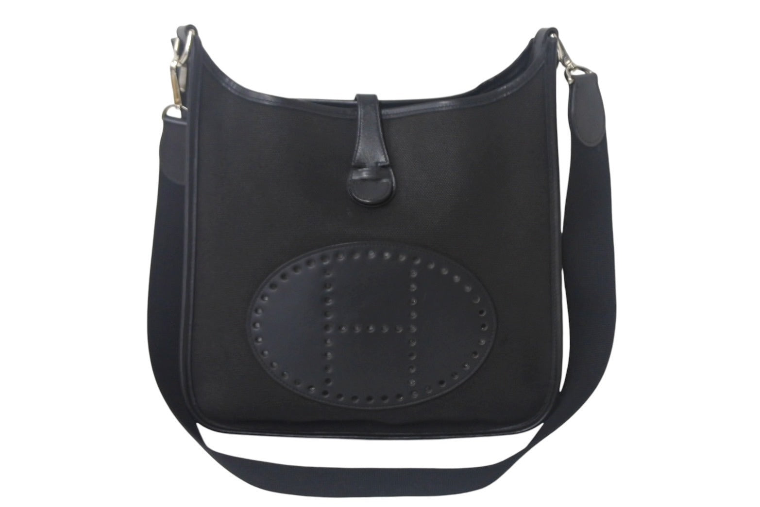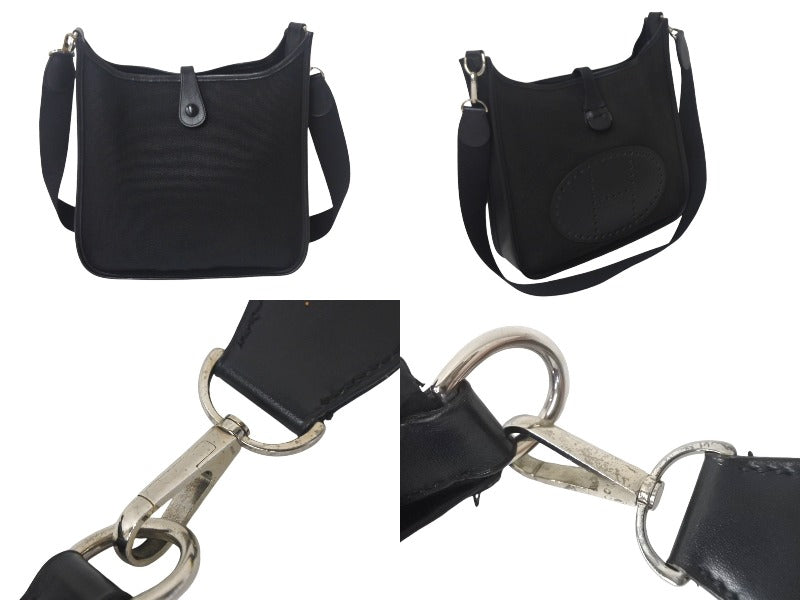 HERMES エルメス エヴリン1PM ショルダーバッグ ブラック トワルアッシュ ヴォースイフト ☐H刻印 シルバー金具 美品 中古 4c069015