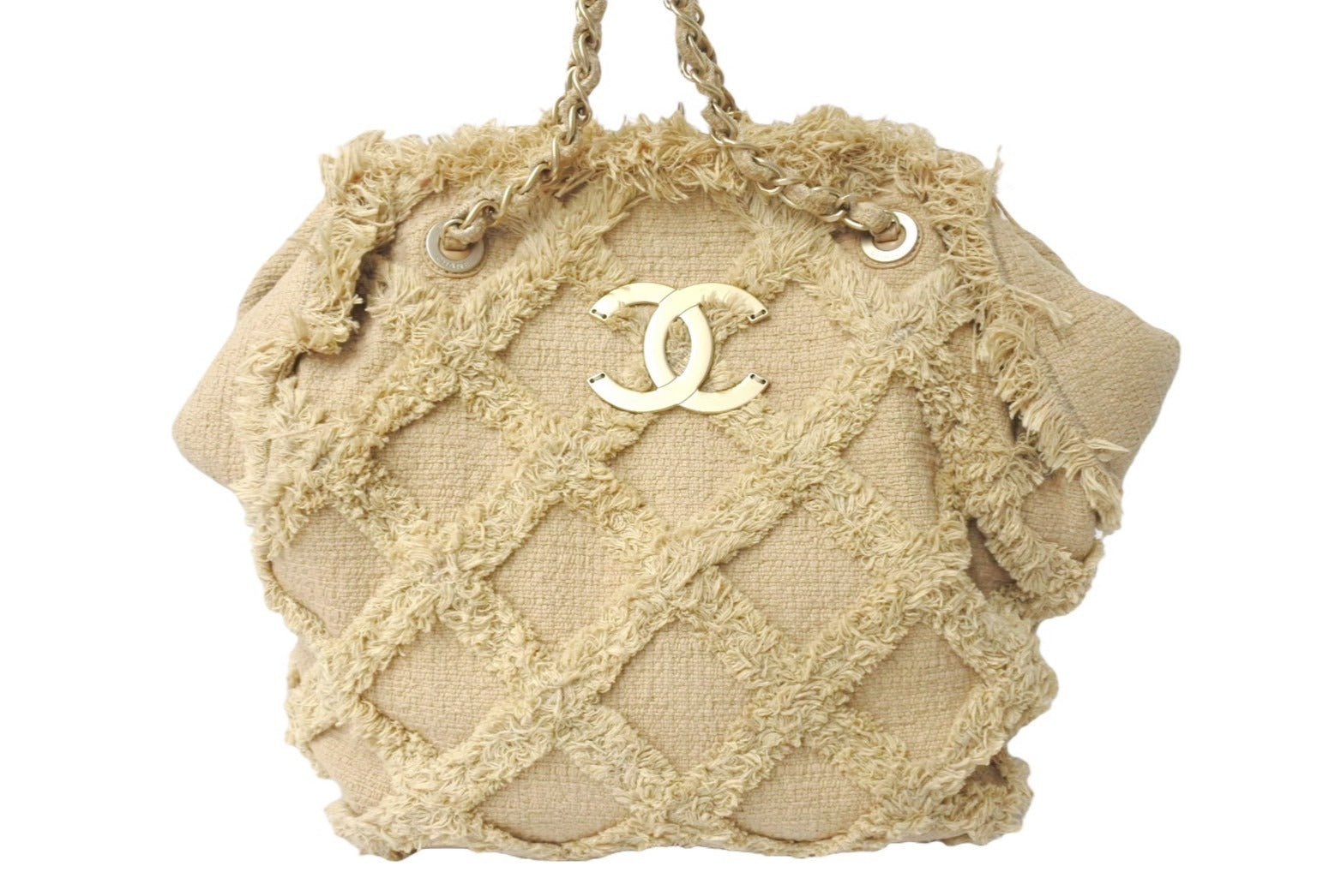 CHANEL シャネル ココマーク チェーントートバッグ 20番台 イタリア製 ツイード ベージュ ゴールド金具 美品 中古 4c06975