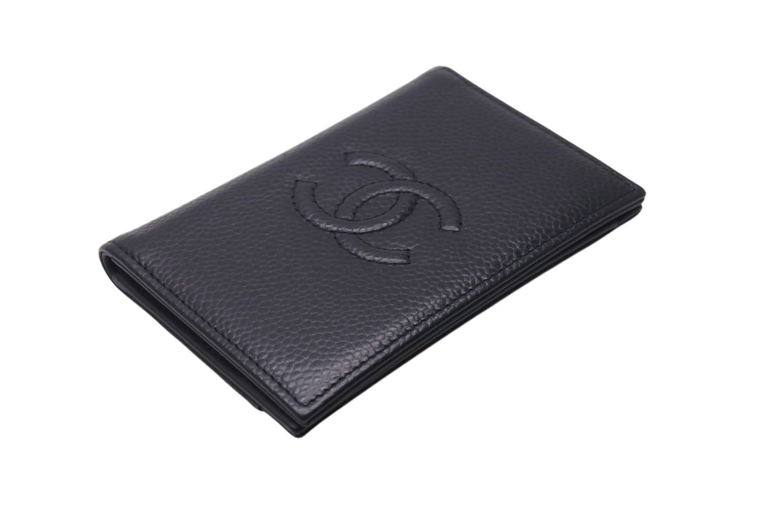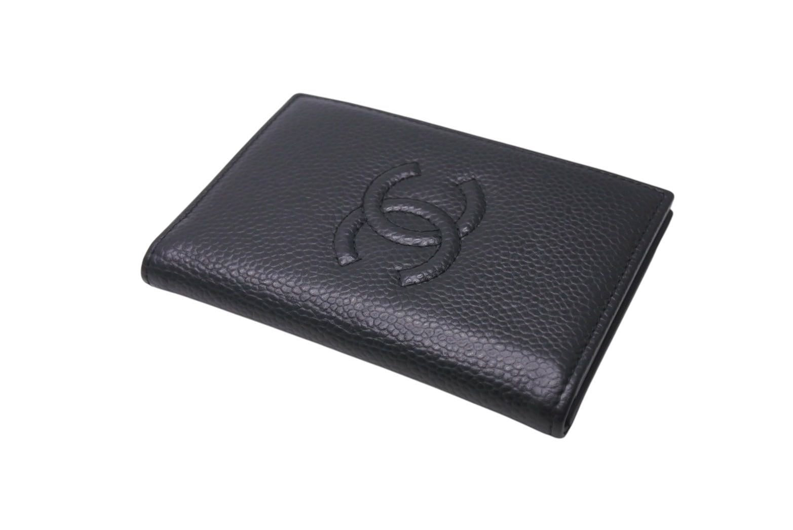 CHANEL シャネル ココマーク カードケース パスケース 名刺 22番台 スペイン製 キャビアスキン ブラック 美品 中古 4c071273