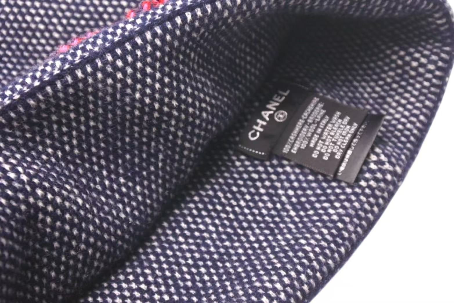 CHANEL シャネル Cashmere Embroidery Coco Mark Beanie カシミヤ 刺繍 ココマークビーニー ネイビー 美品 中古 4c074477