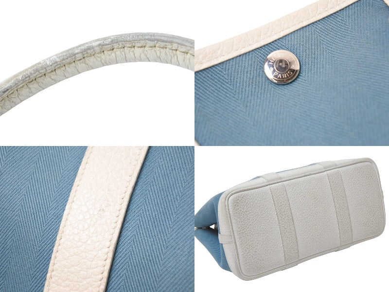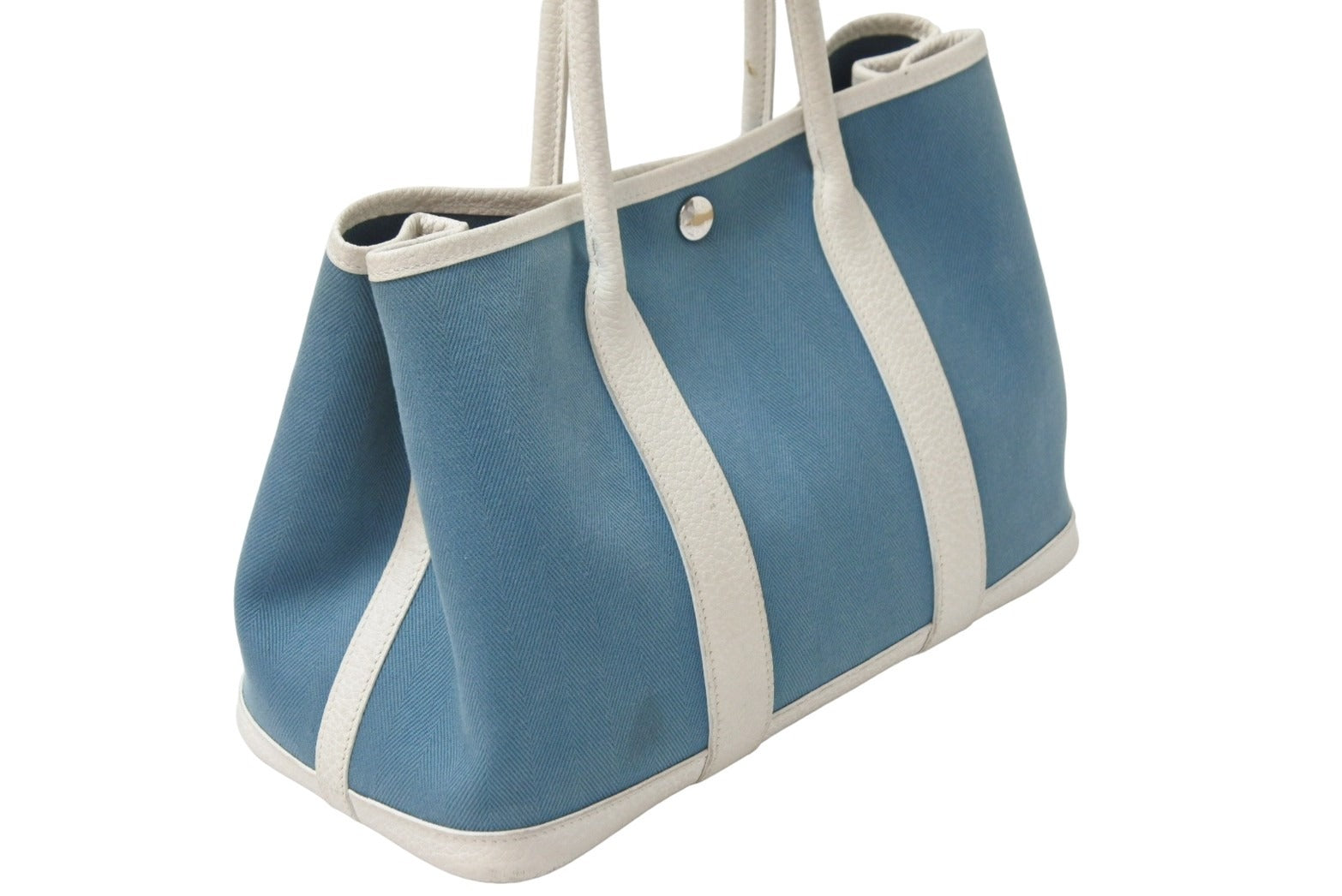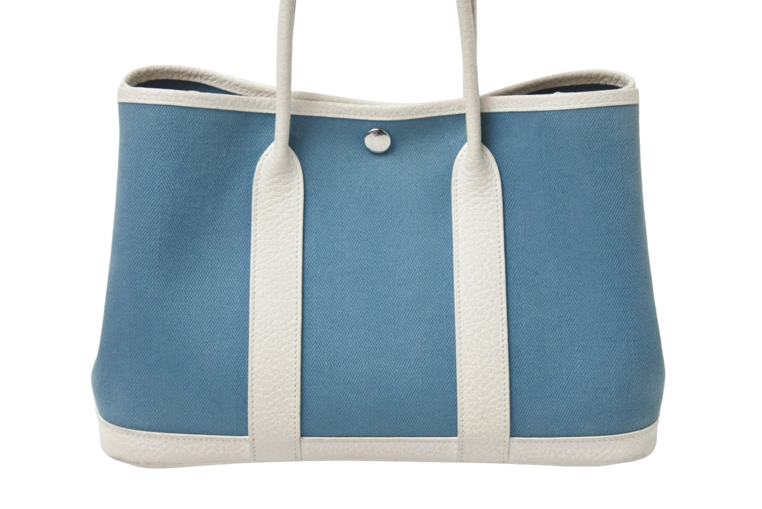 HERMES エルメス ガーデンパーティTPM トートバッグ ハンドバッグ T刻印 トワルオフィシェ ブルーシャンブレー 良品 中古 51207