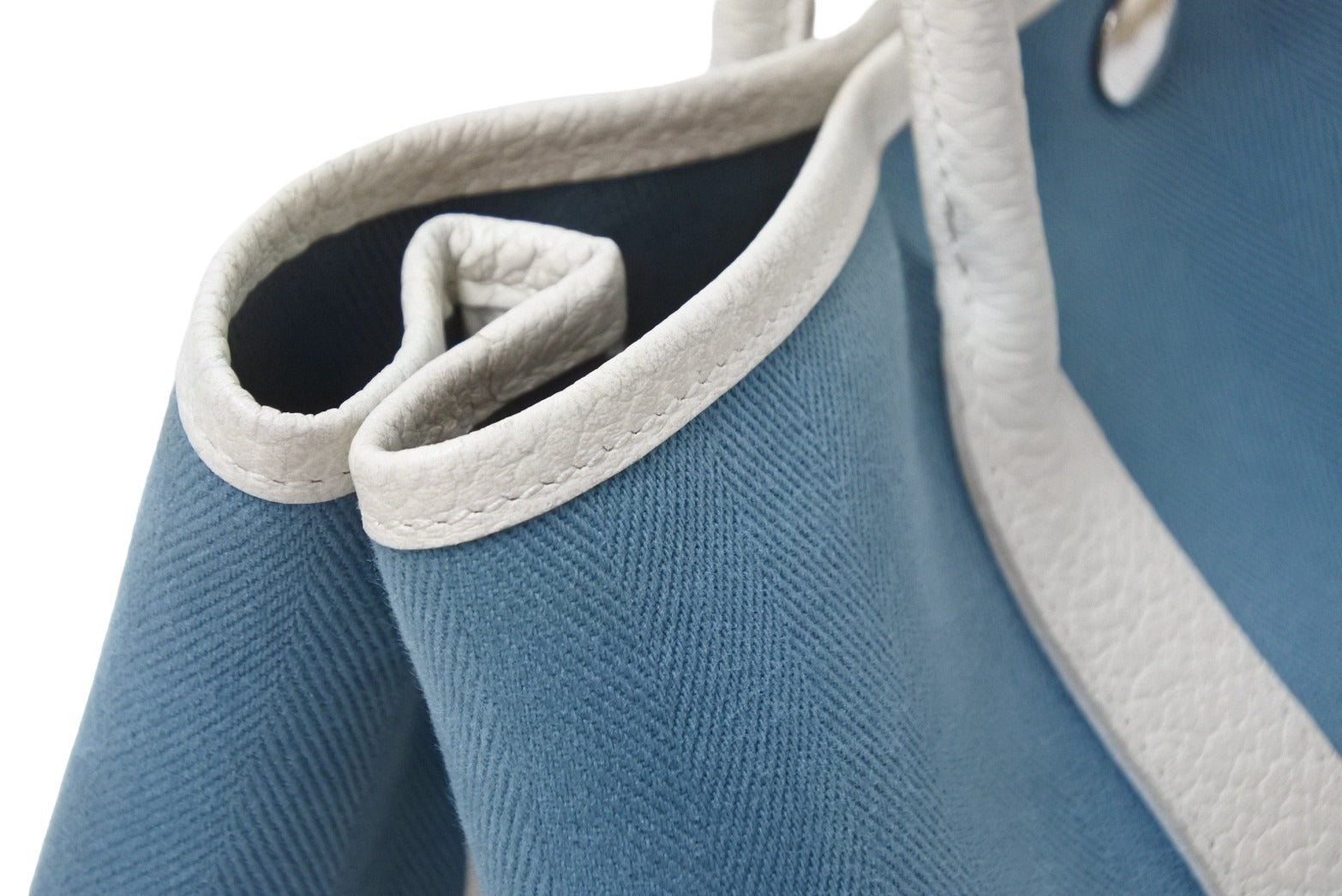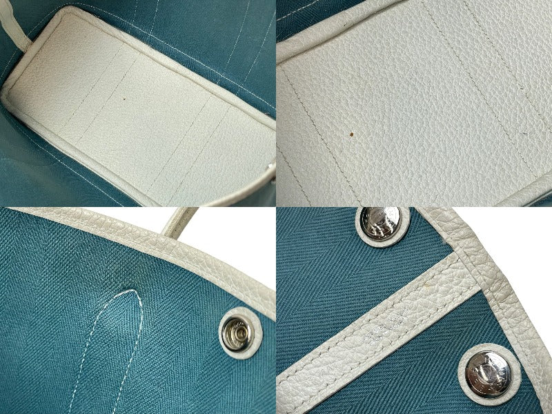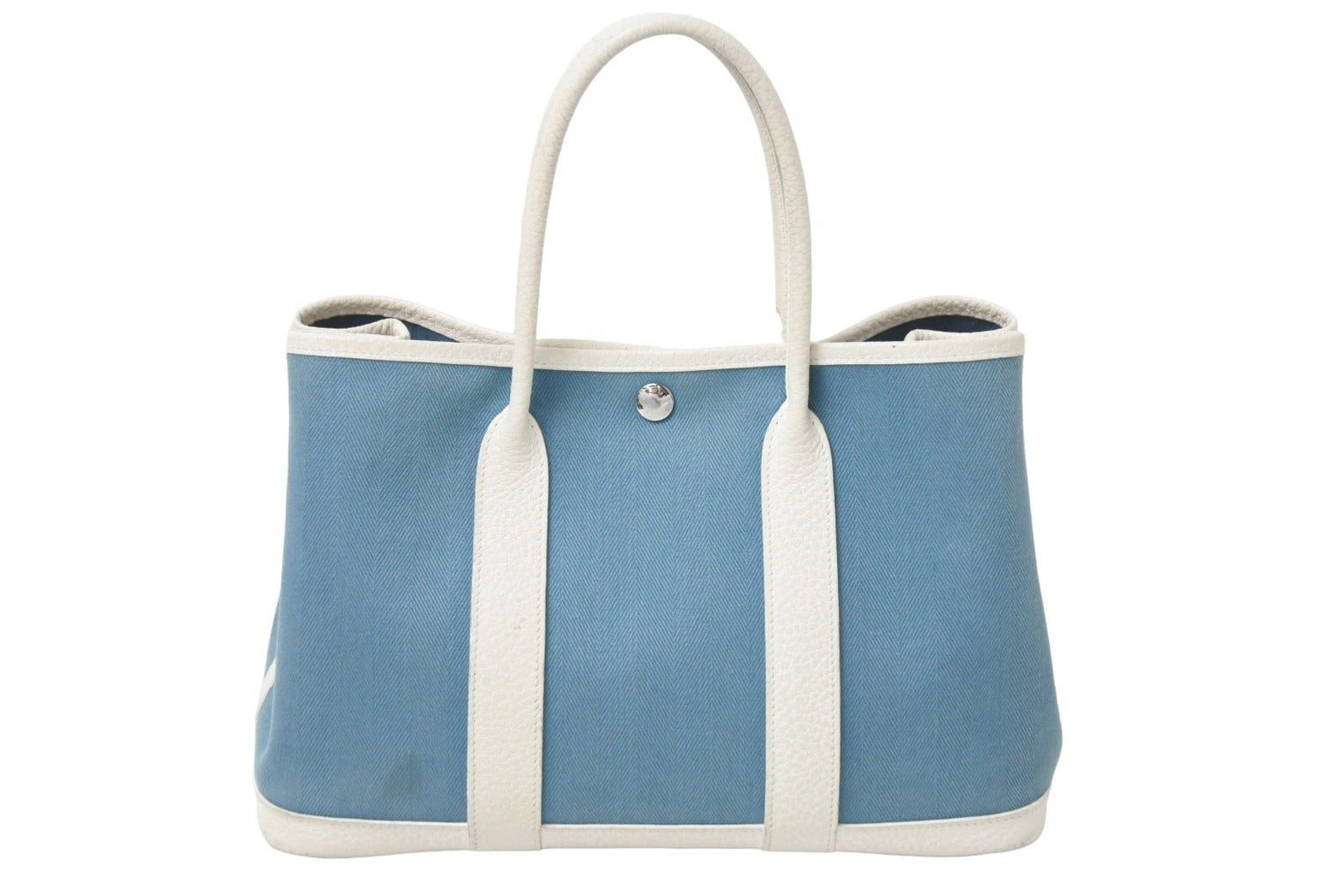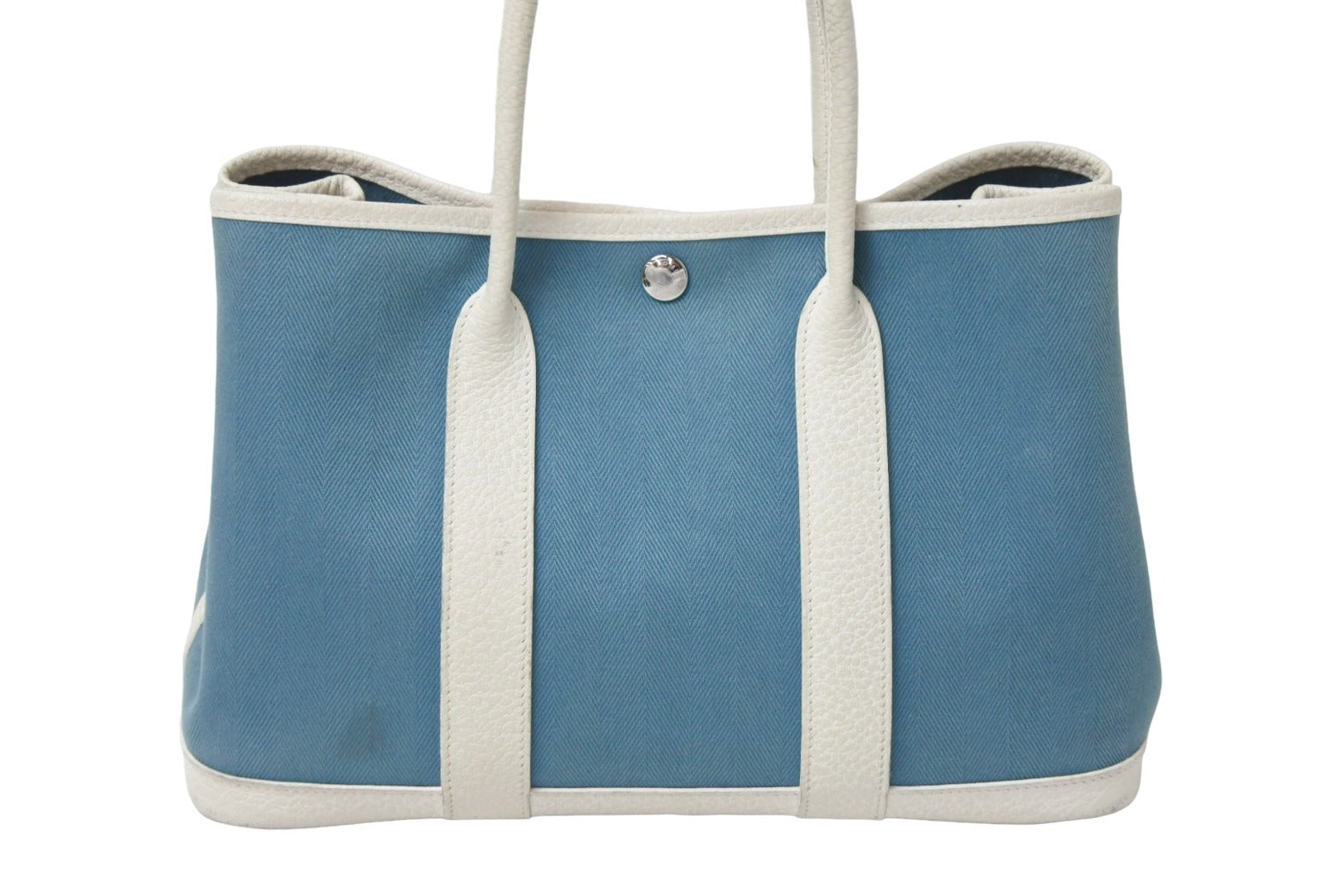 HERMES エルメス ガーデンパーティTPM トートバッグ ハンドバッグ T刻印 トワルオフィシェ ブルーシャンブレー 良品 中古 51207