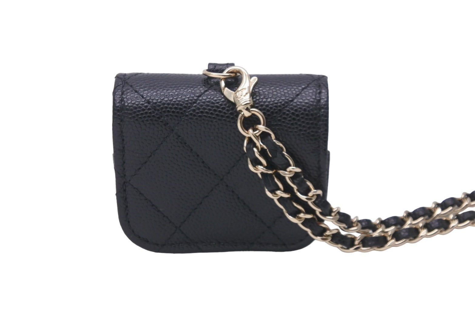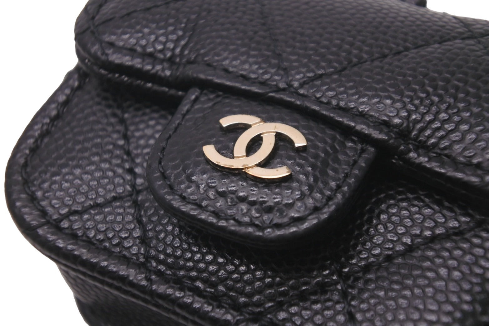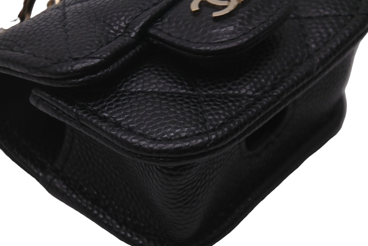 CHANEL シャネル AIR PODS ケース ココマーク マトラッセ AP1739 31番台 キャビアスキン ブラック ゴールド金具 美品 中古 57639